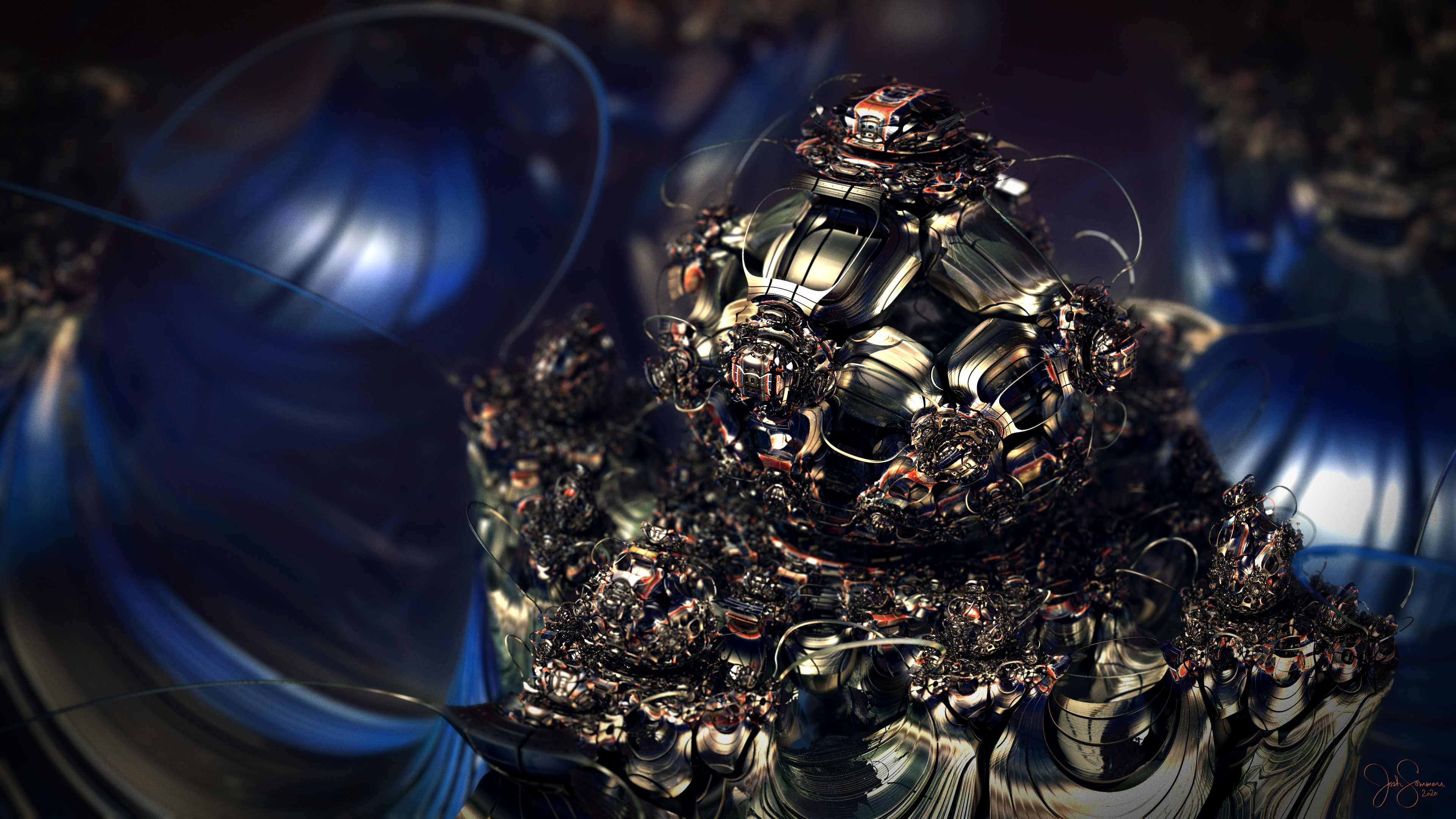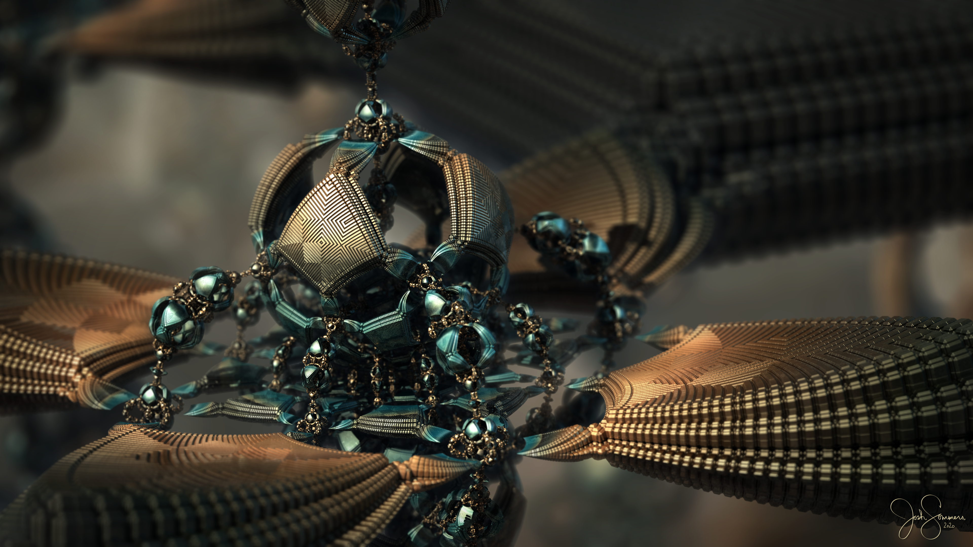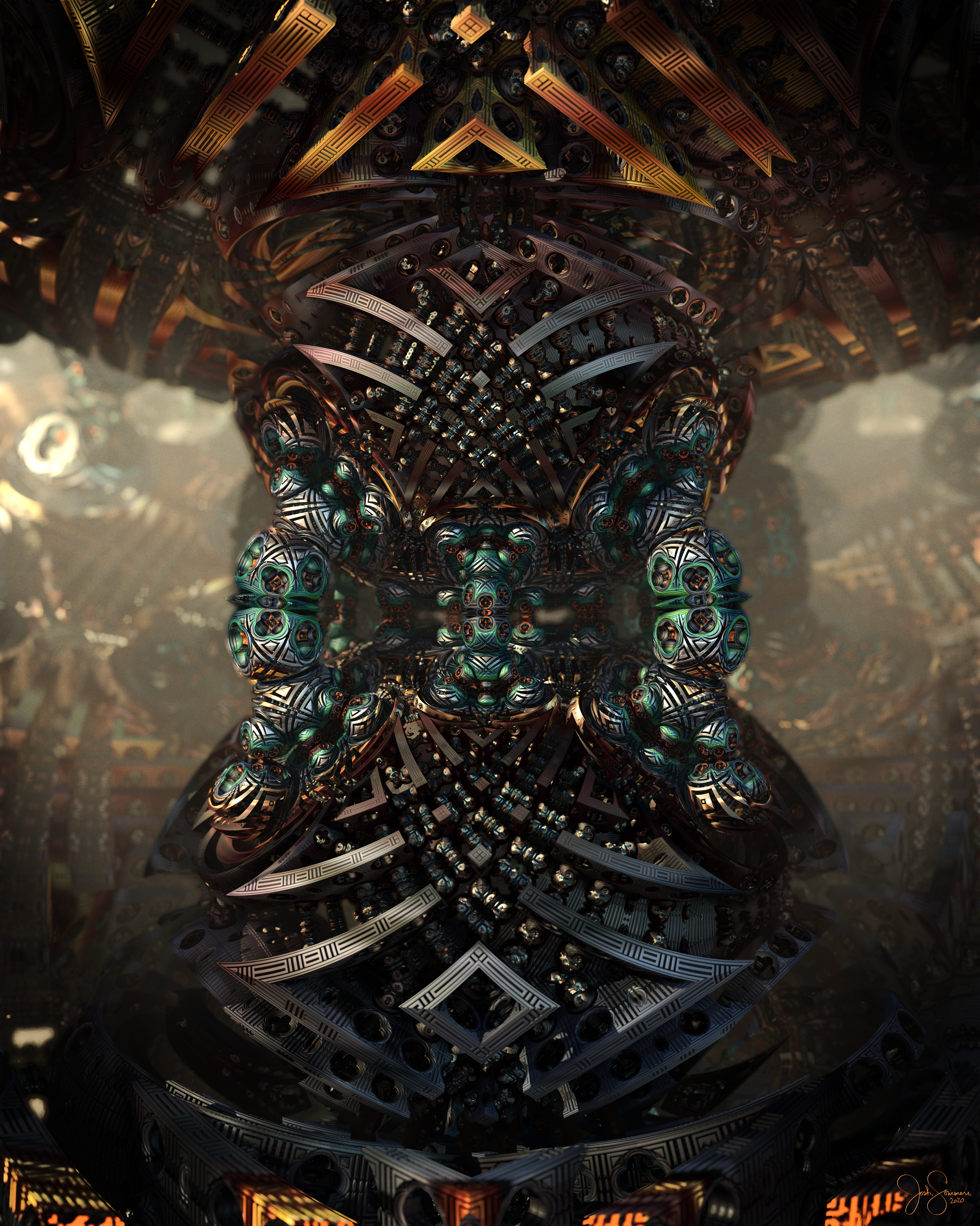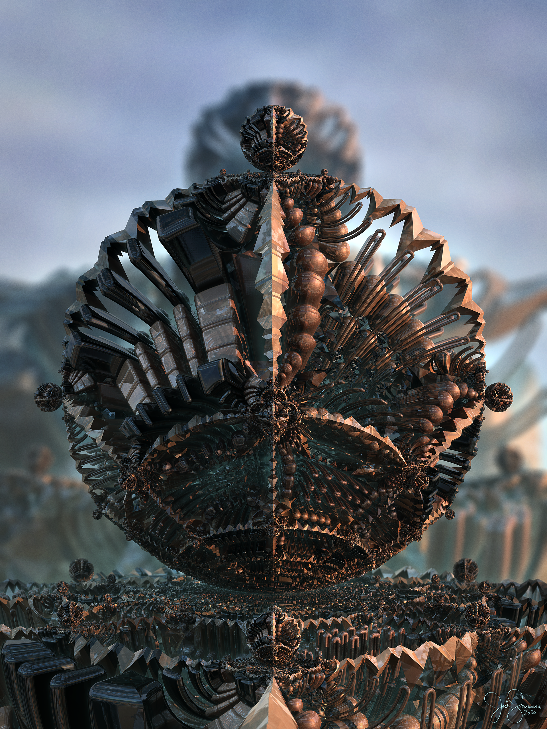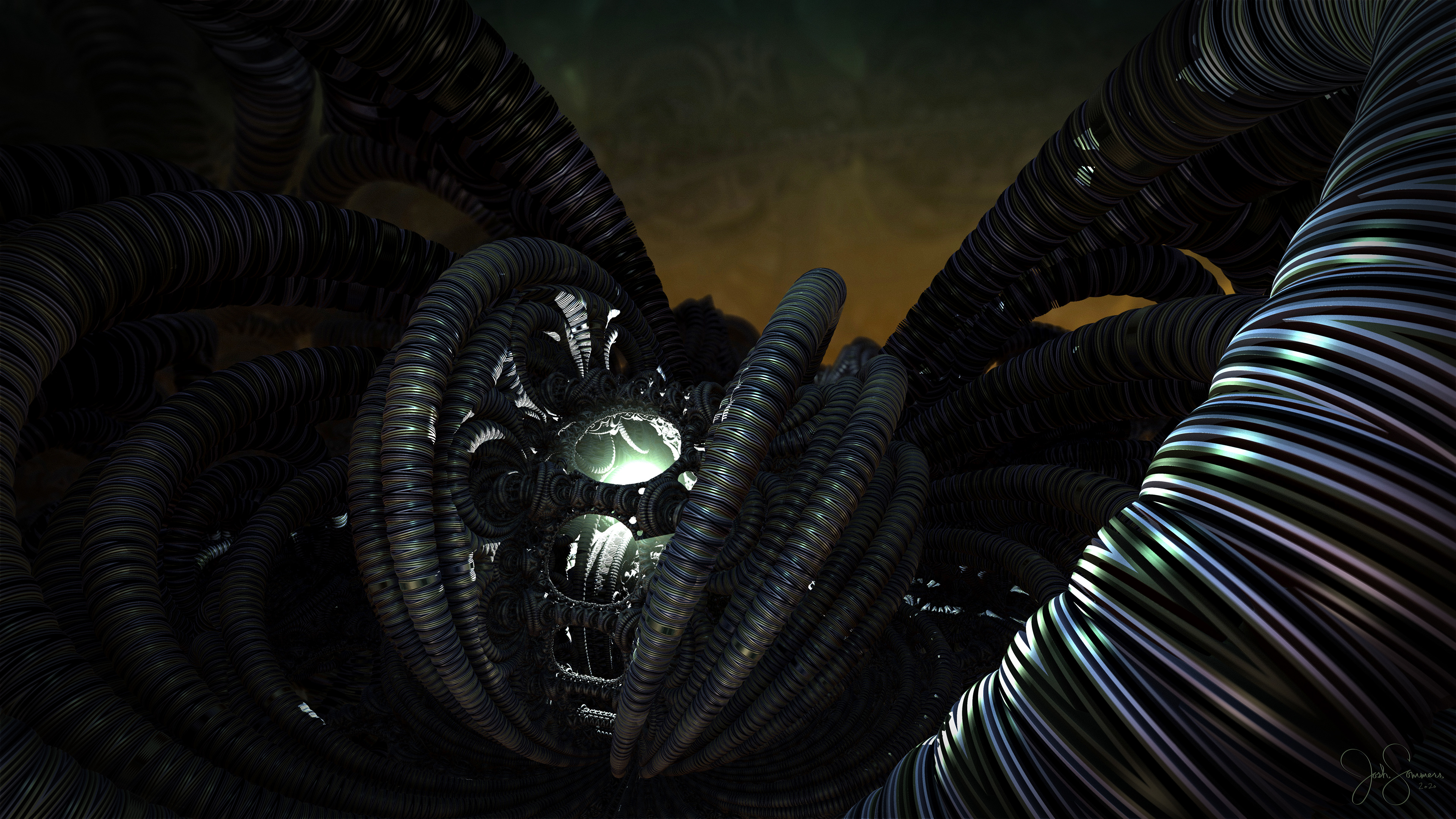 Abstract 3D Fractal art created with Mandelbul3D and Photoshop.