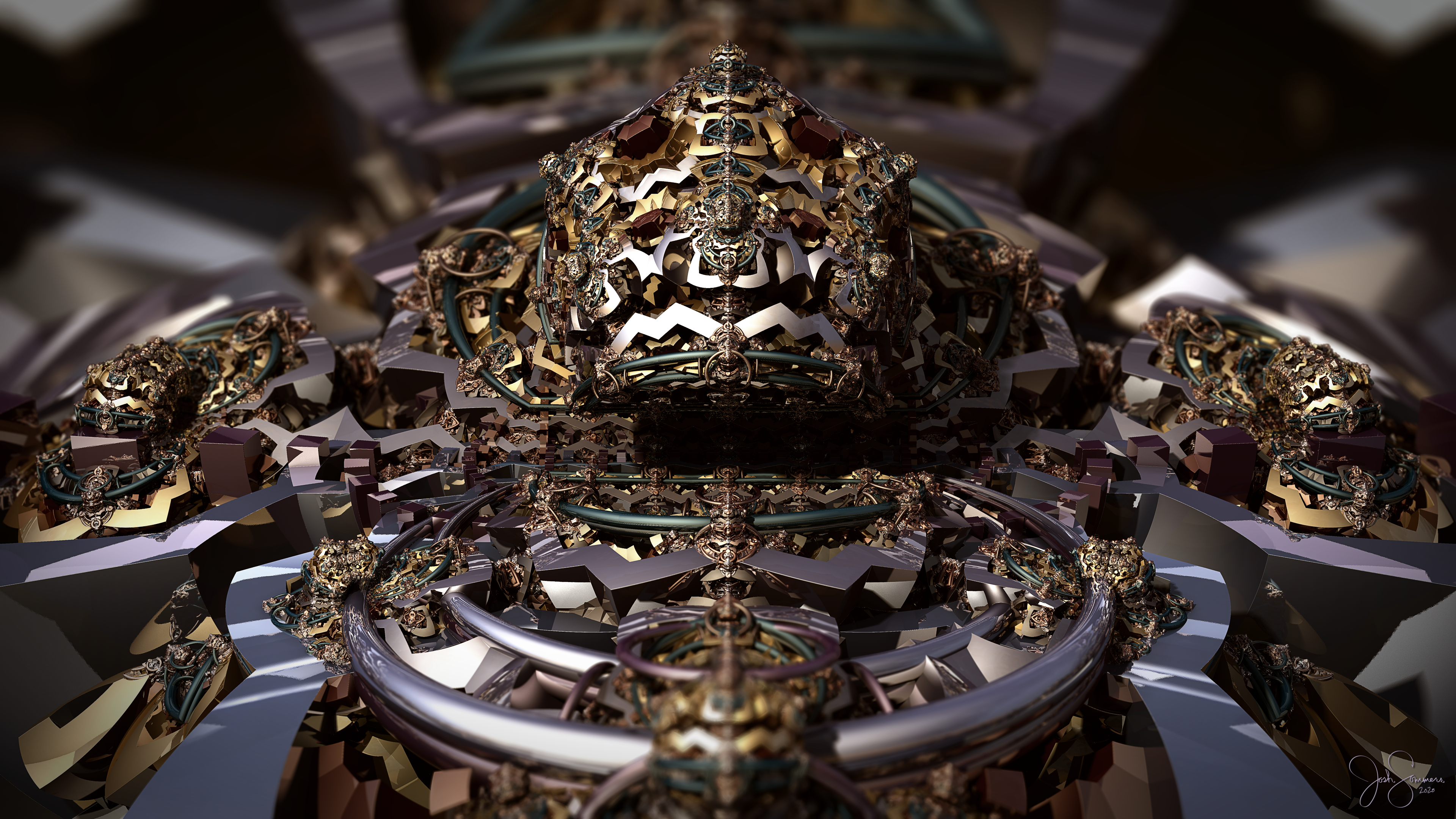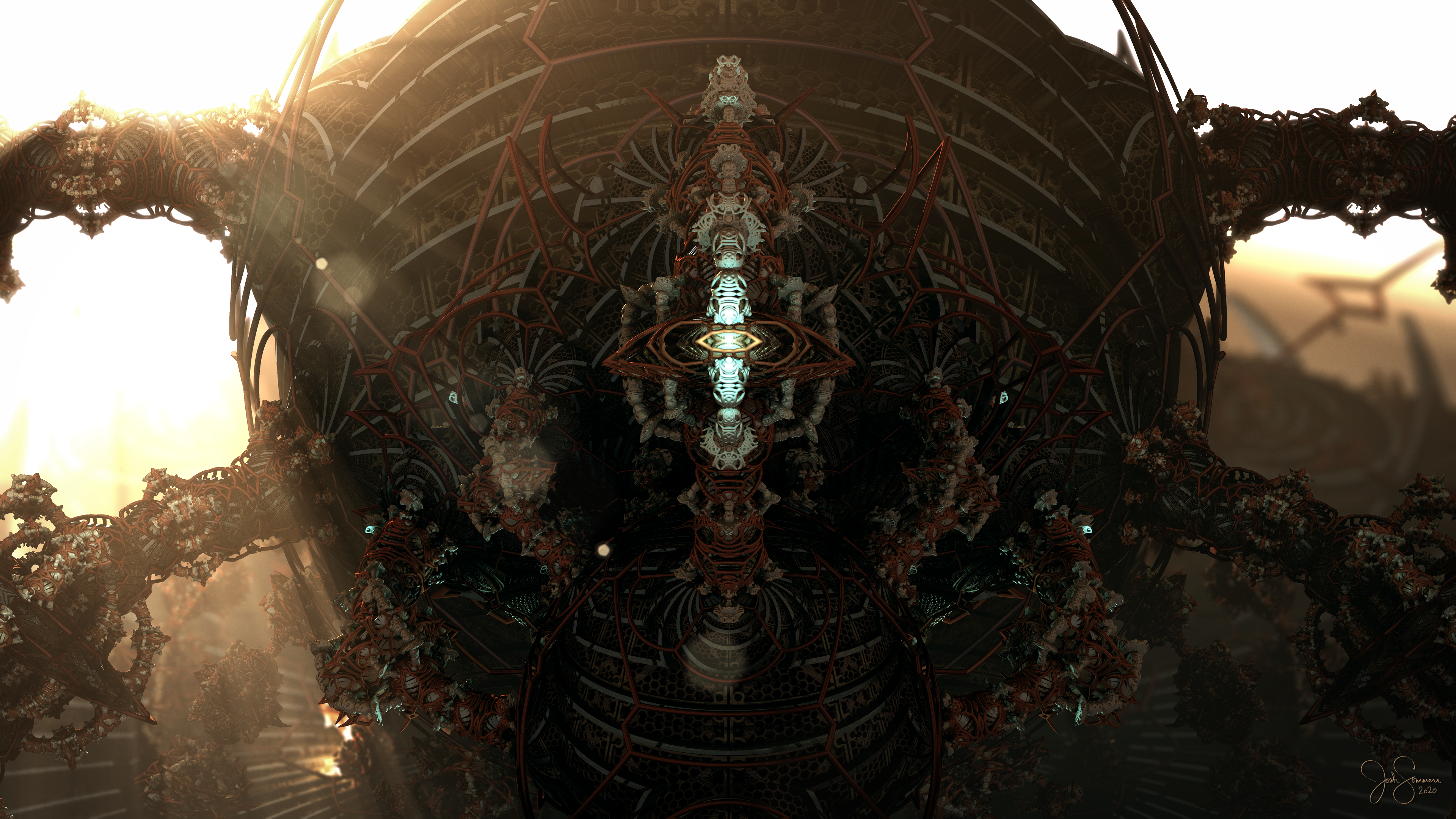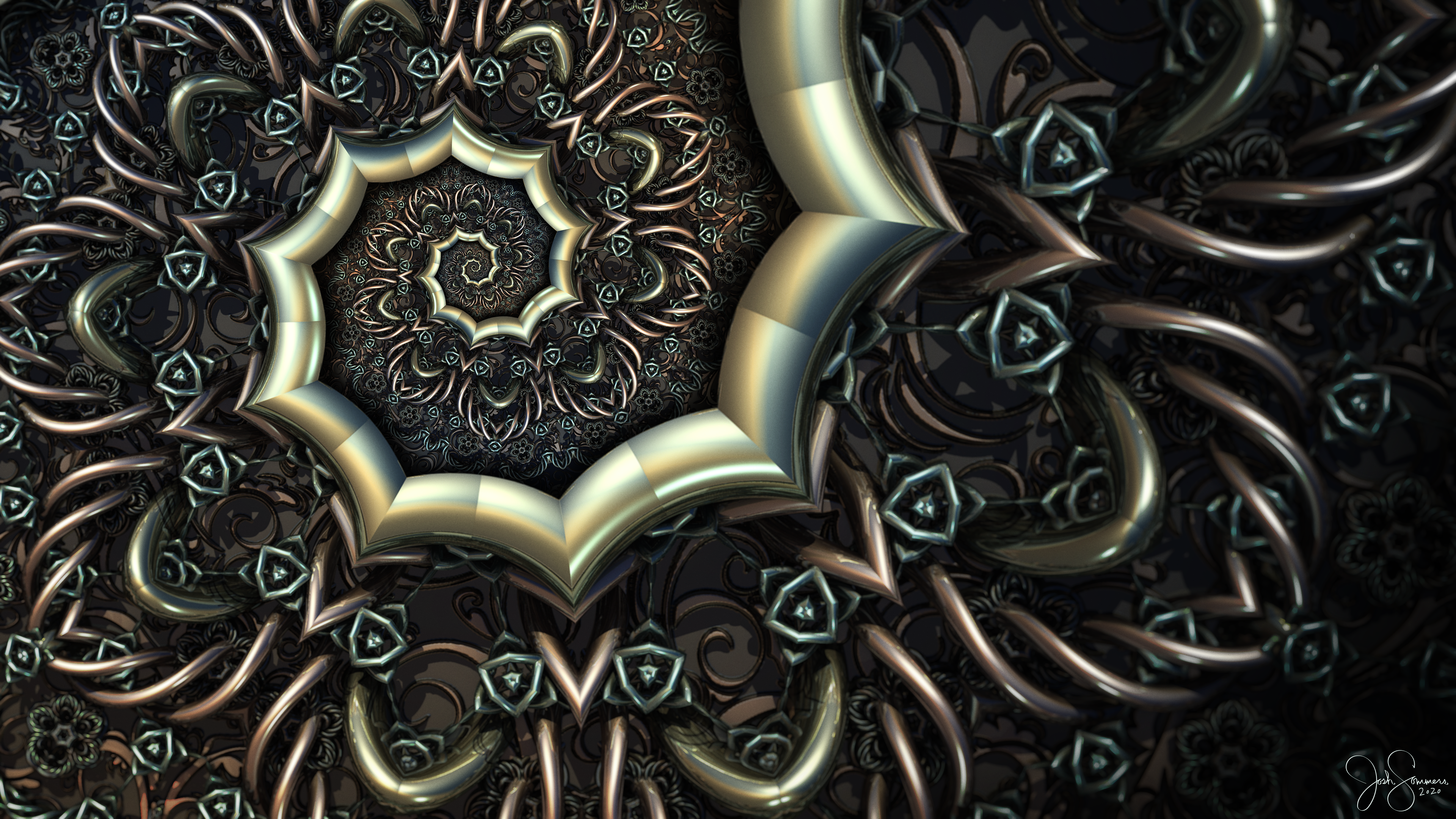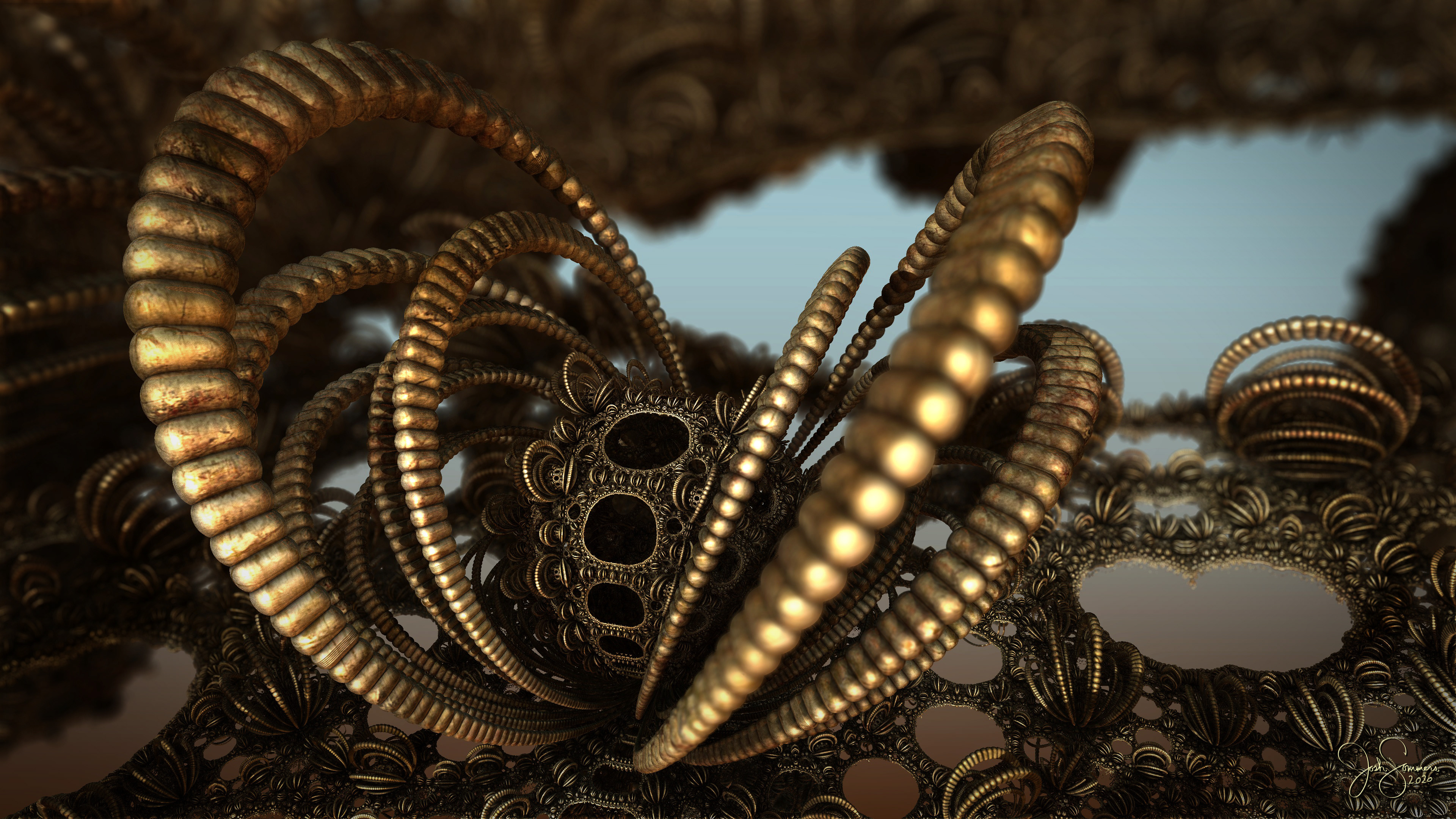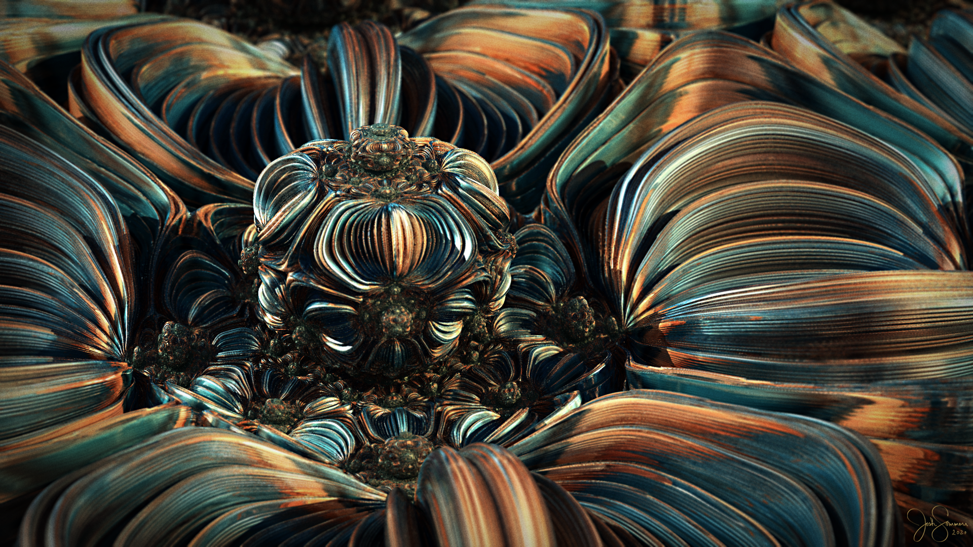 Abstract 3D Fractal art created with Mandelbul3D and Photoshop.