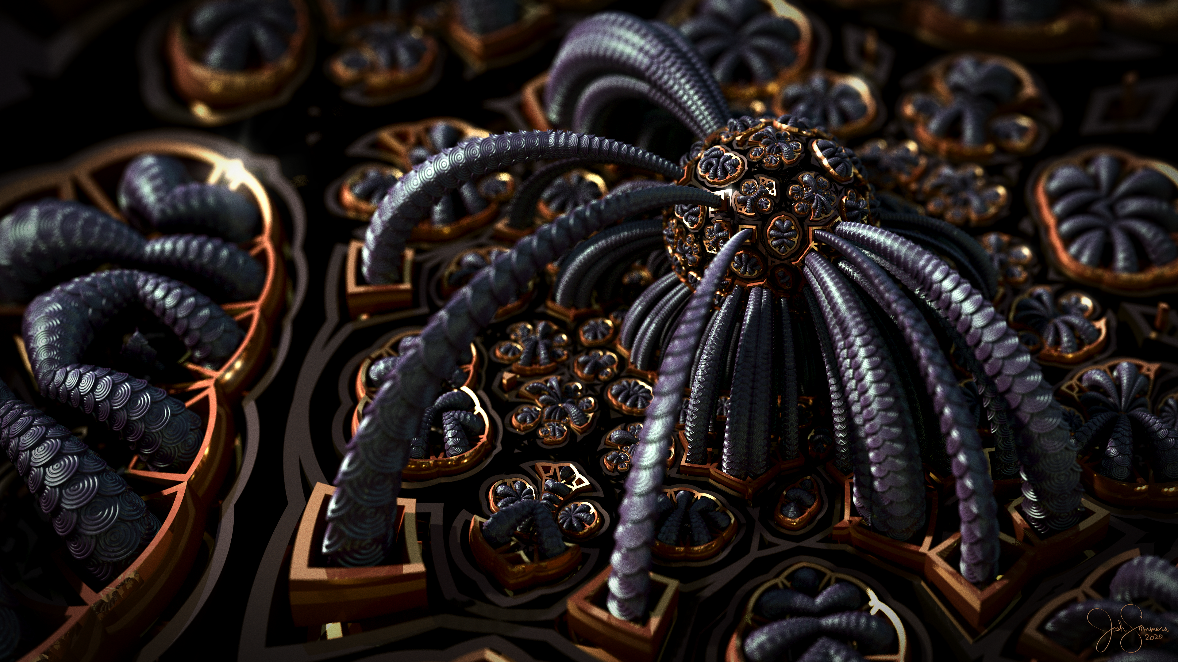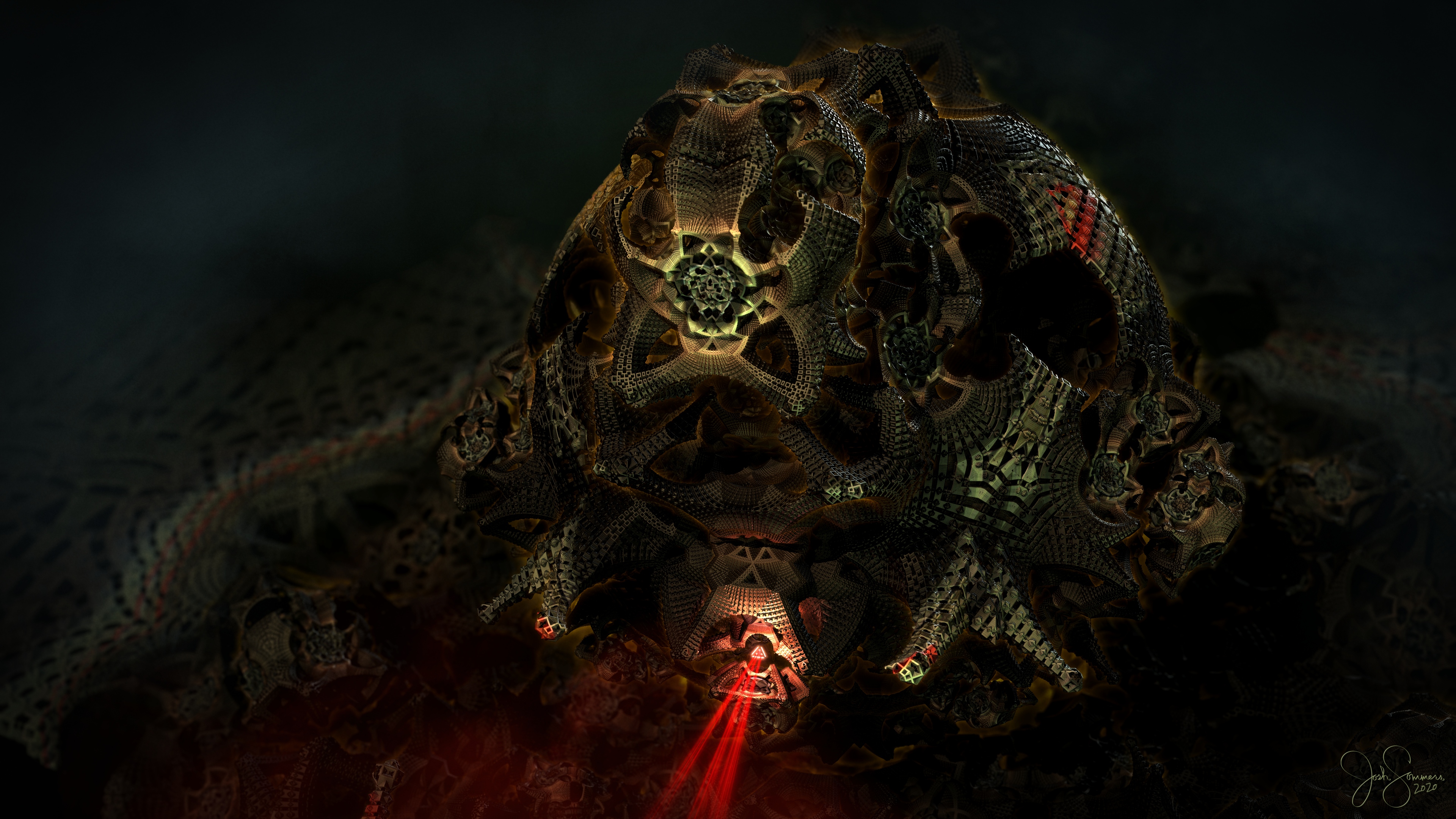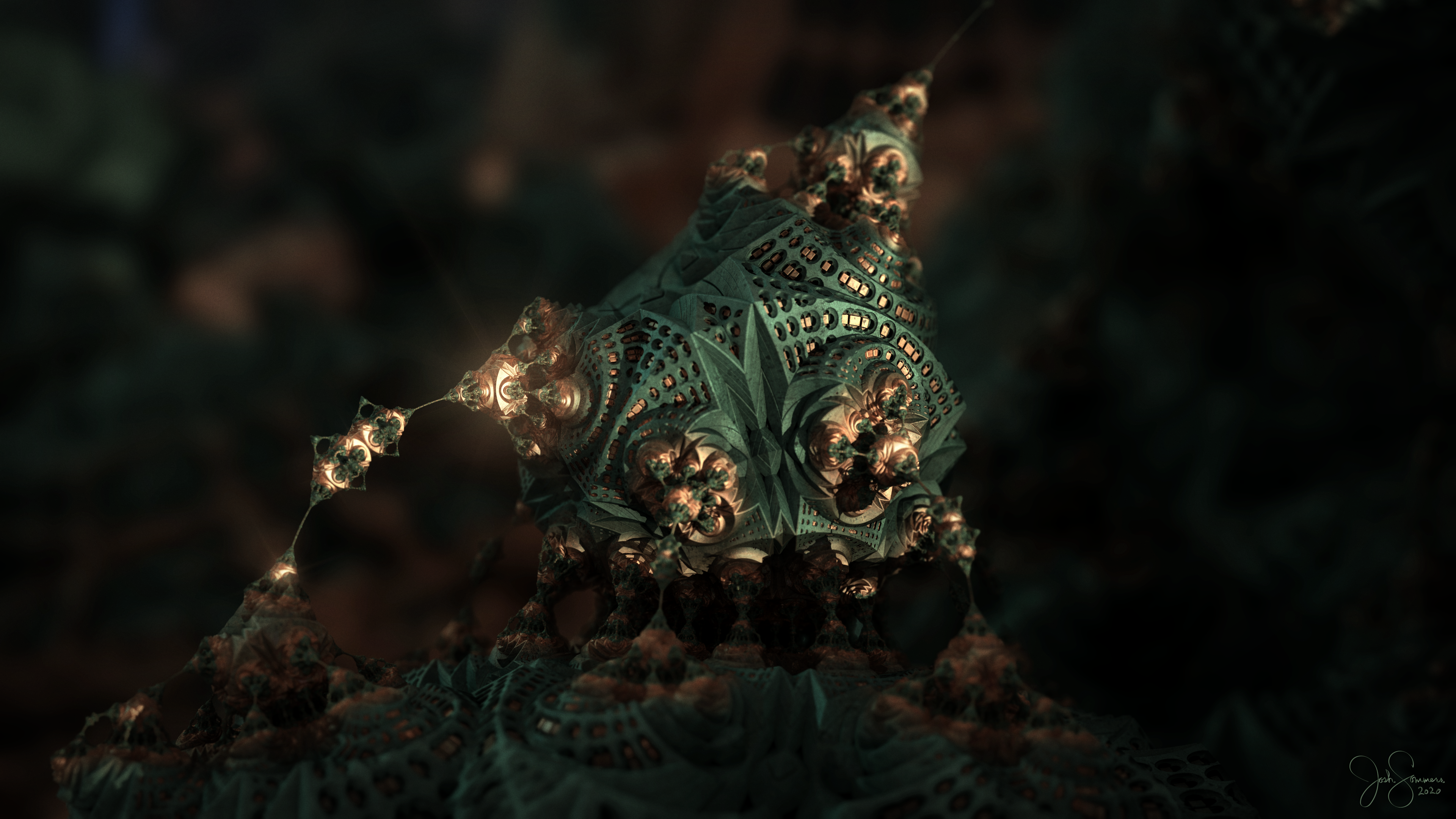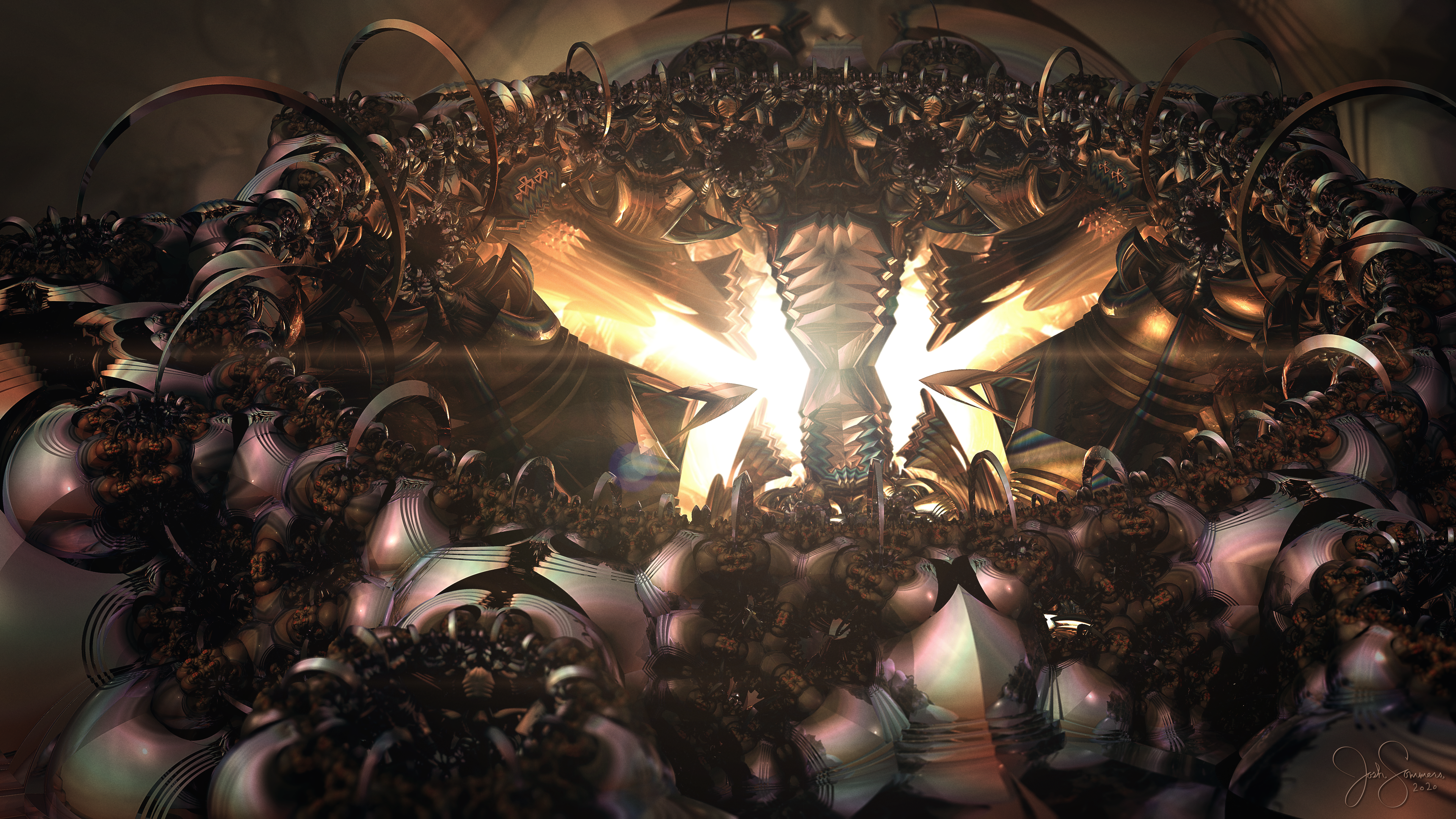 Abstract 3D Fractal art created with Mandelbul3D and Photoshop.