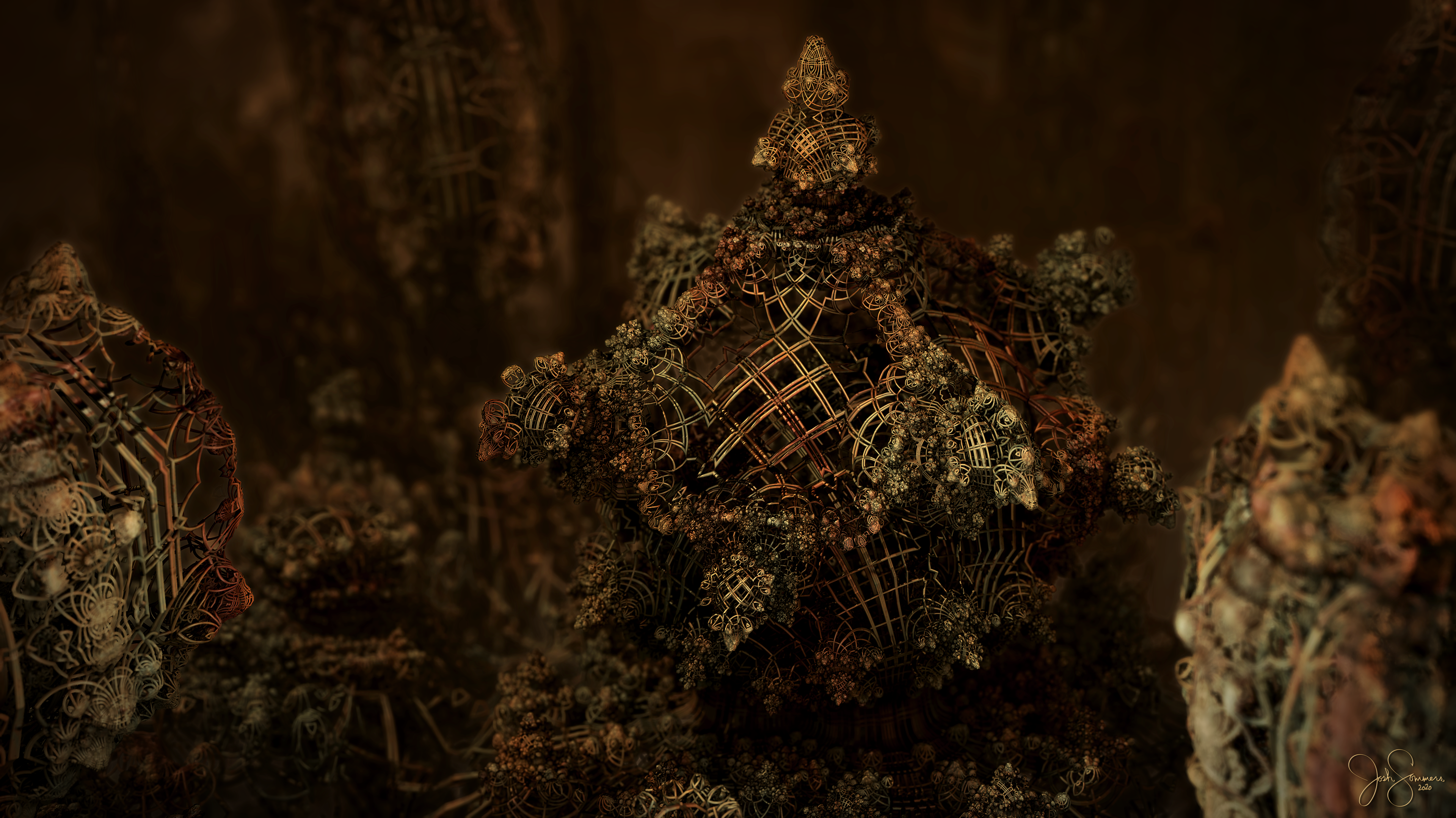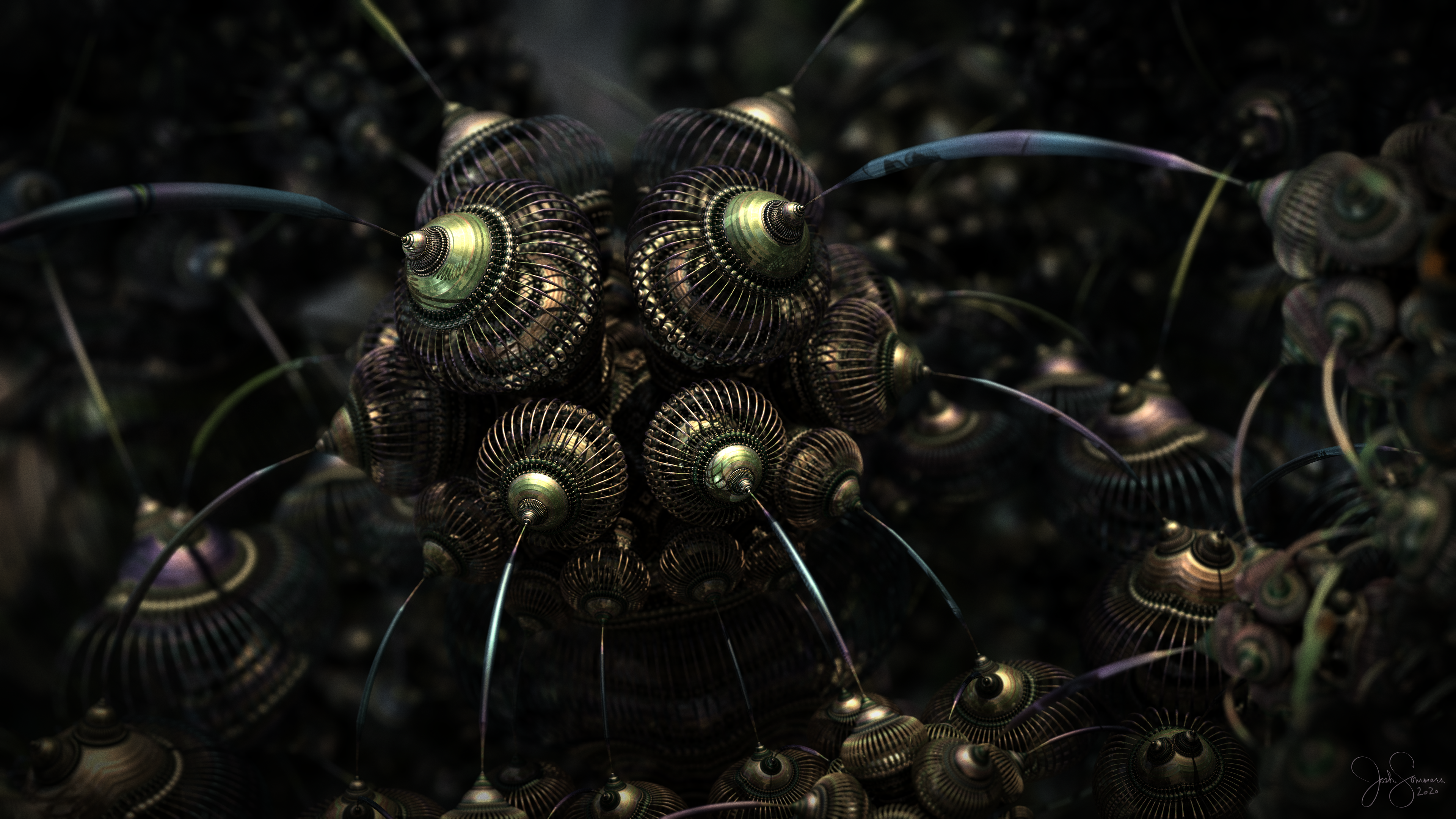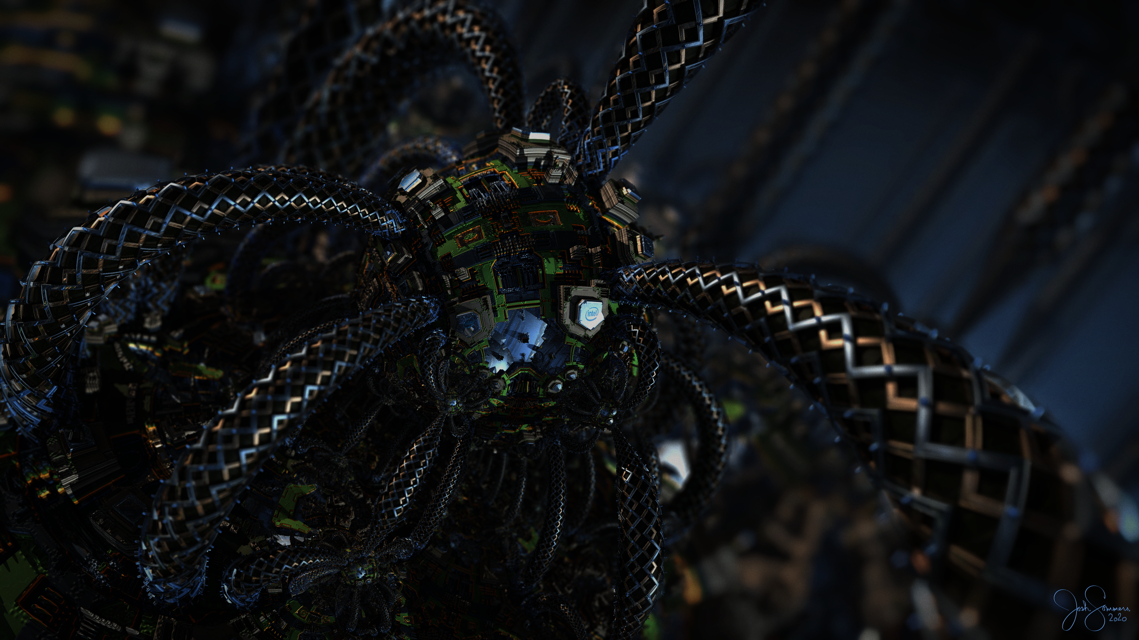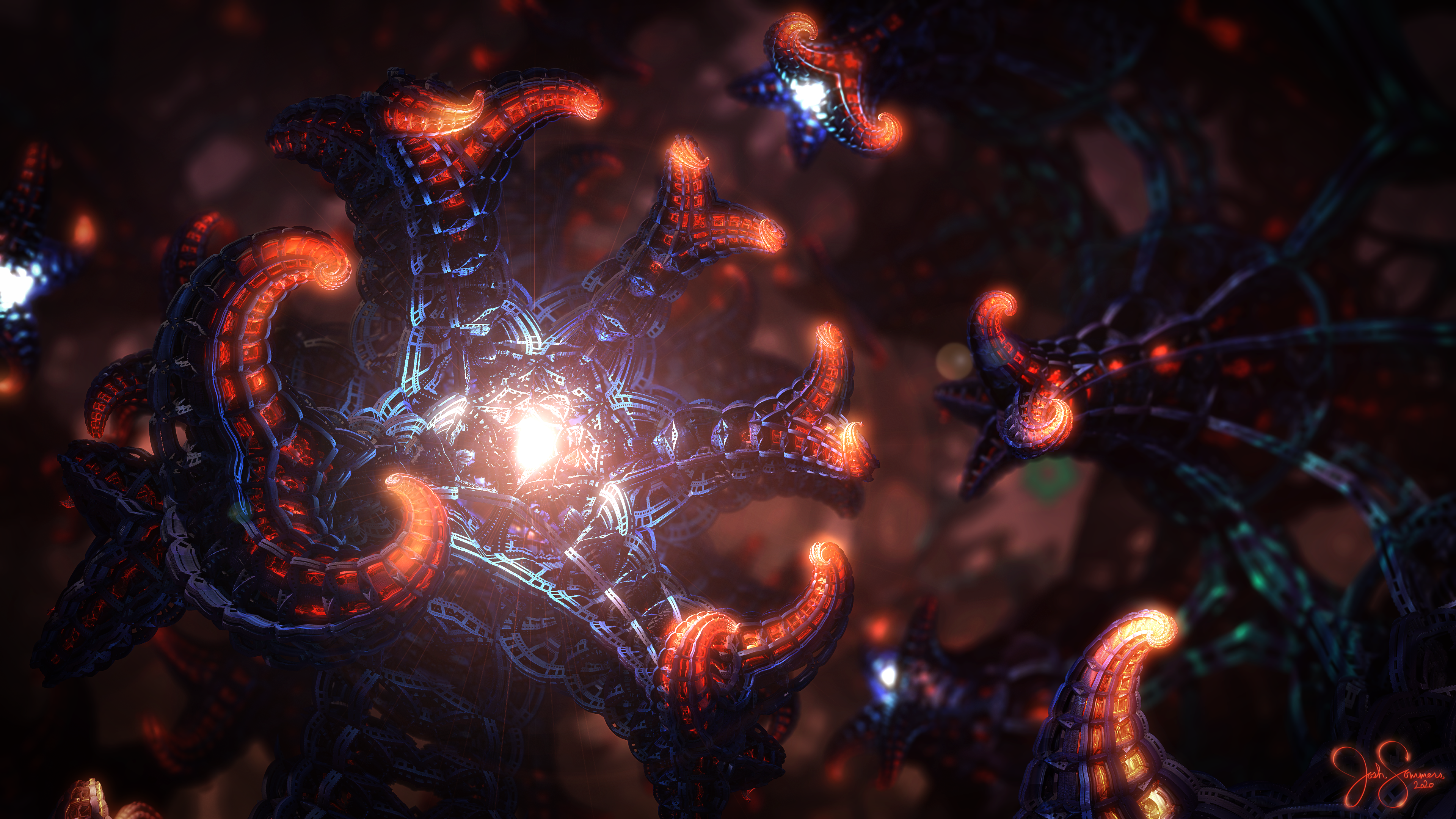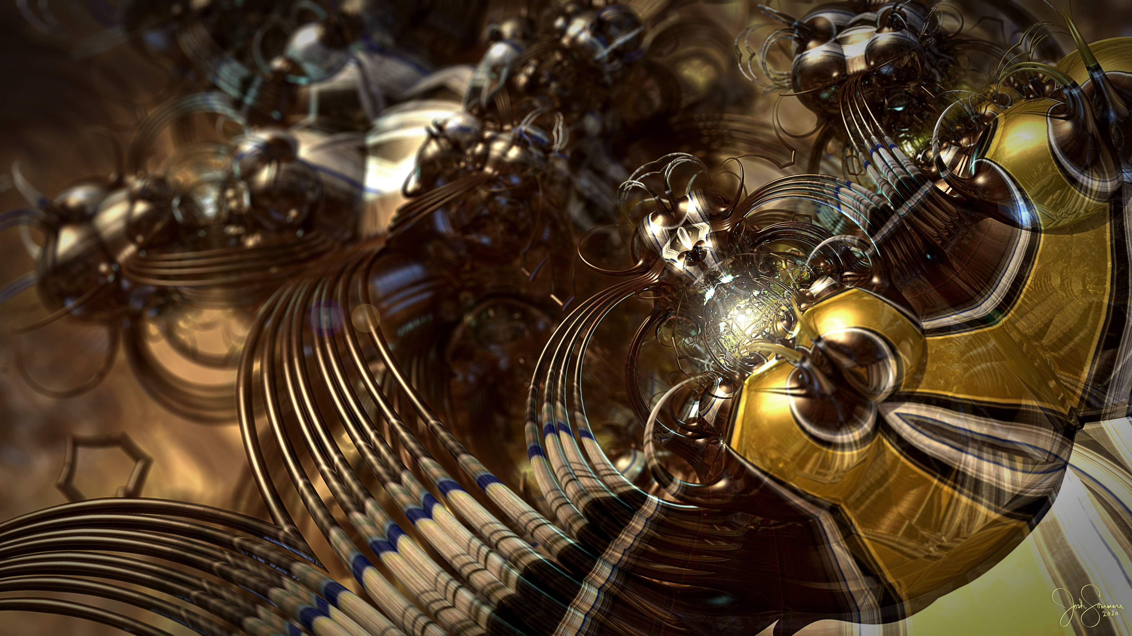 Abstract 3D Fractal art created with Mandelbul3D and Photoshop.