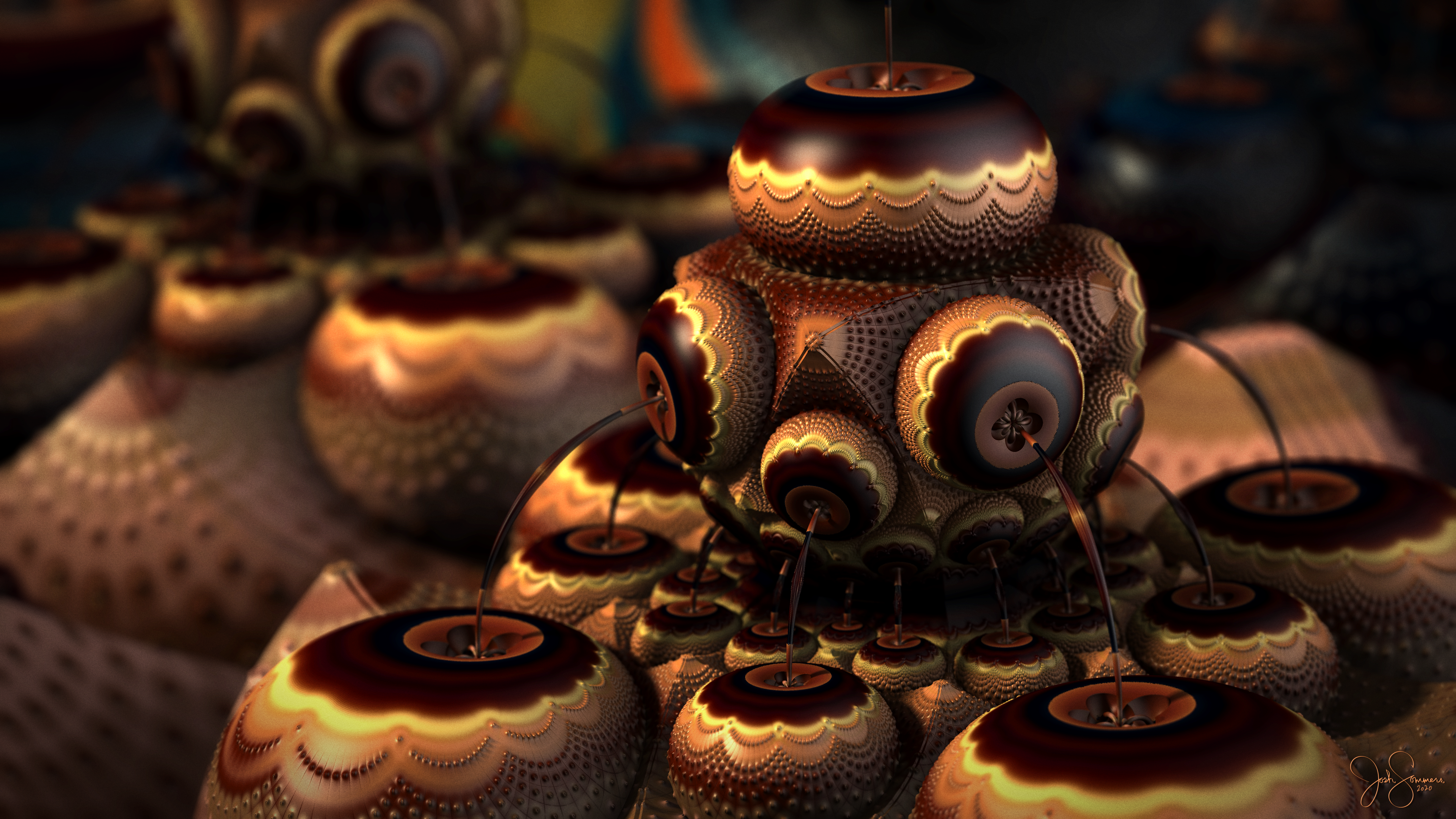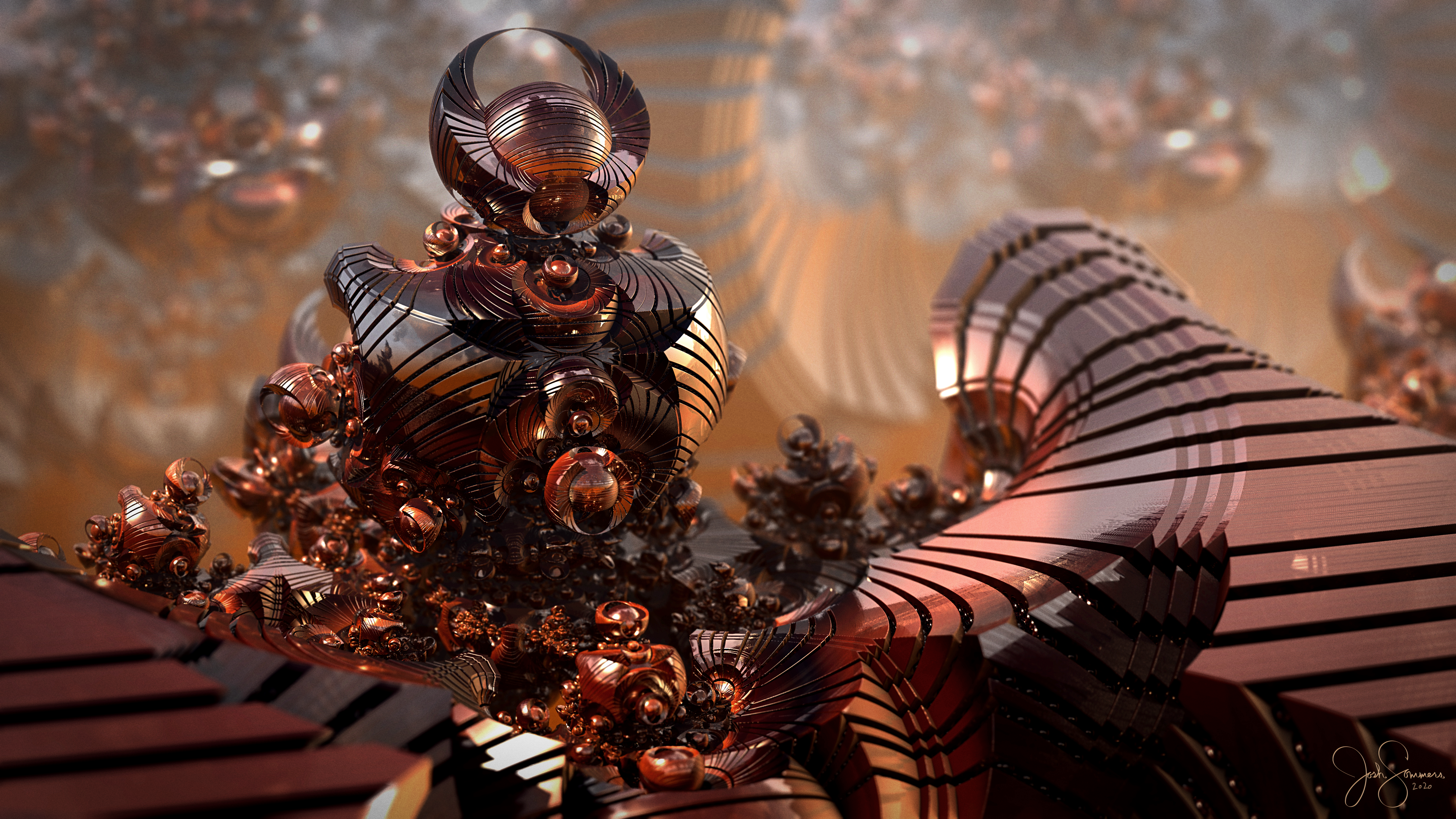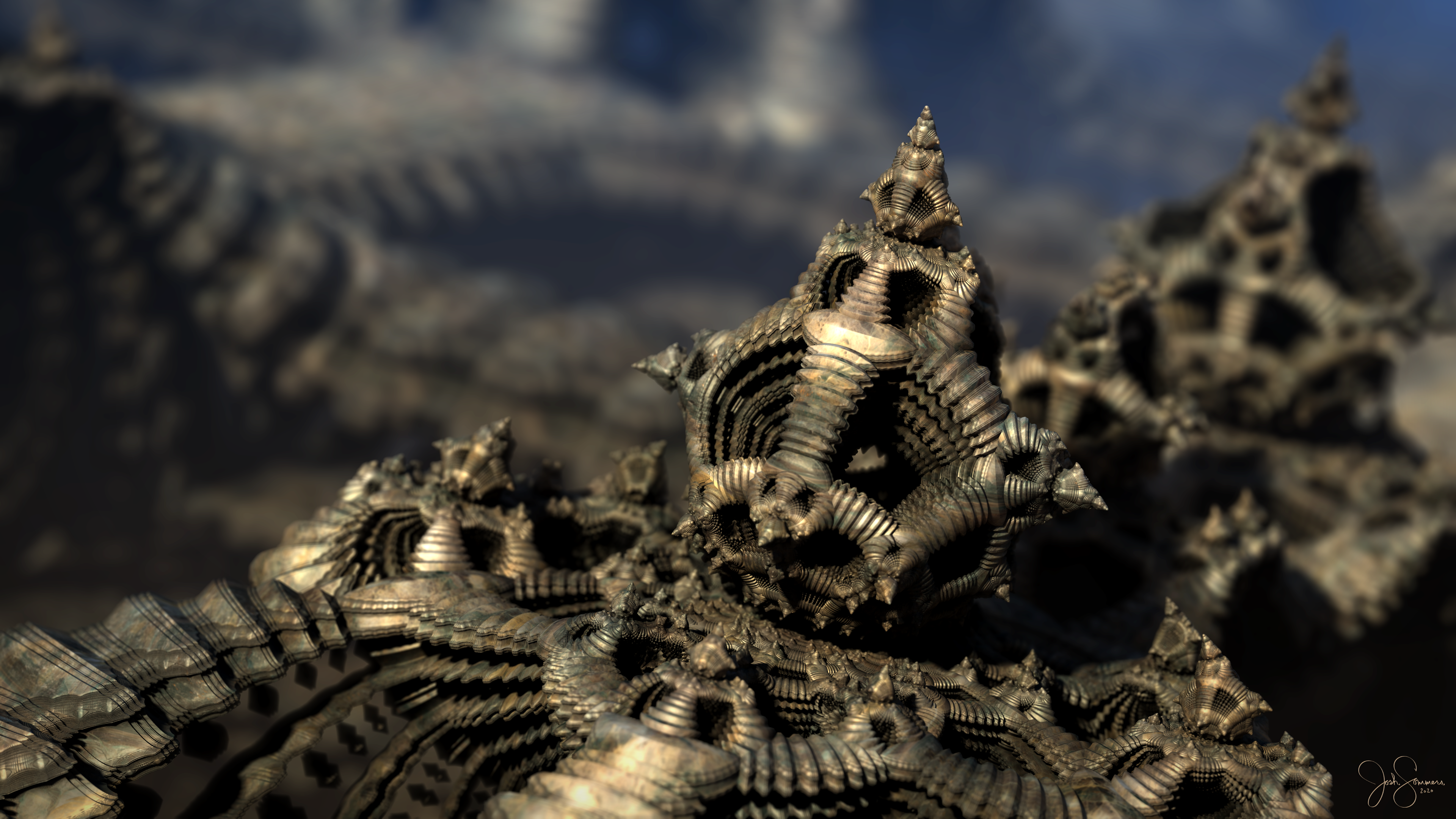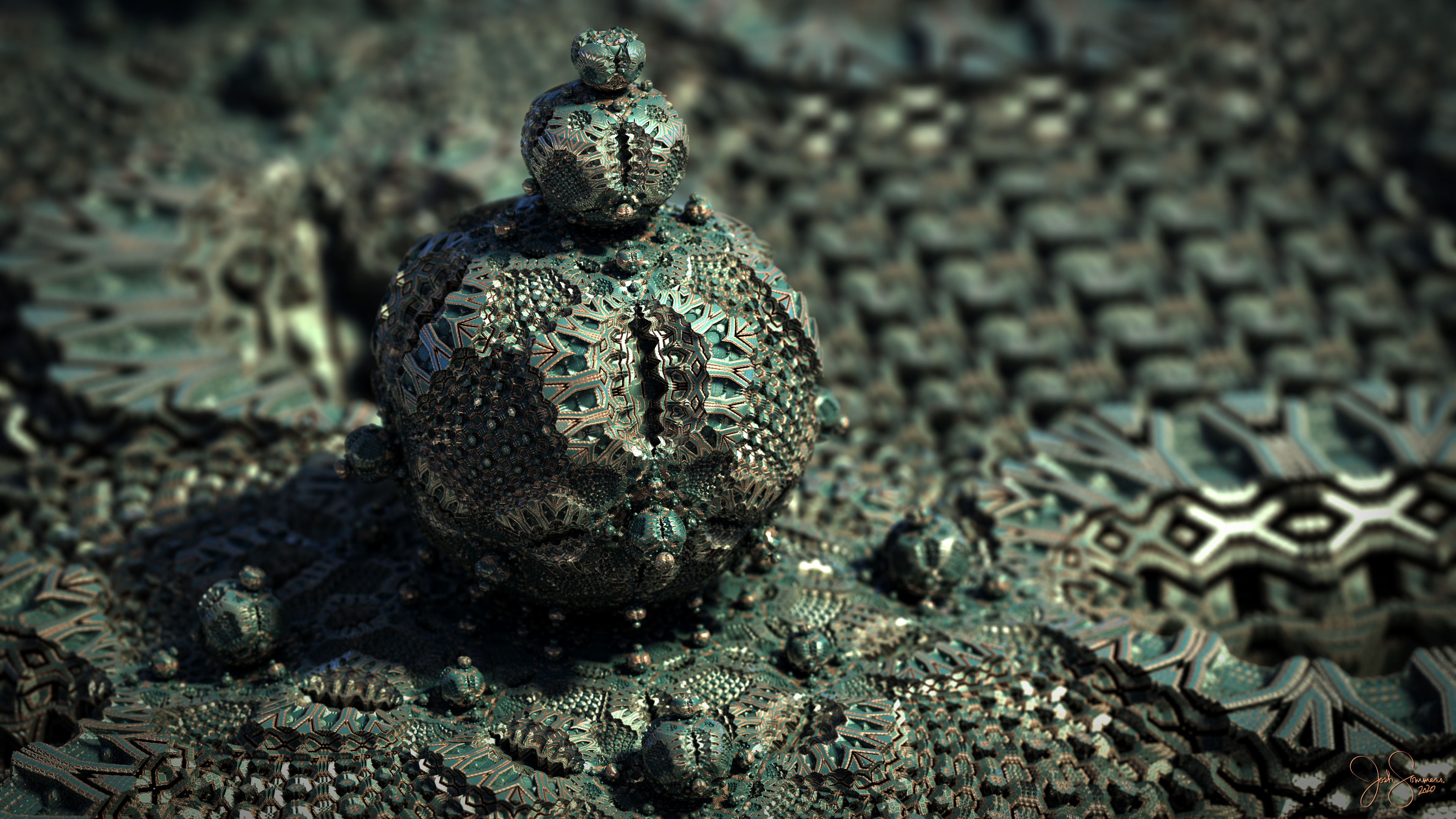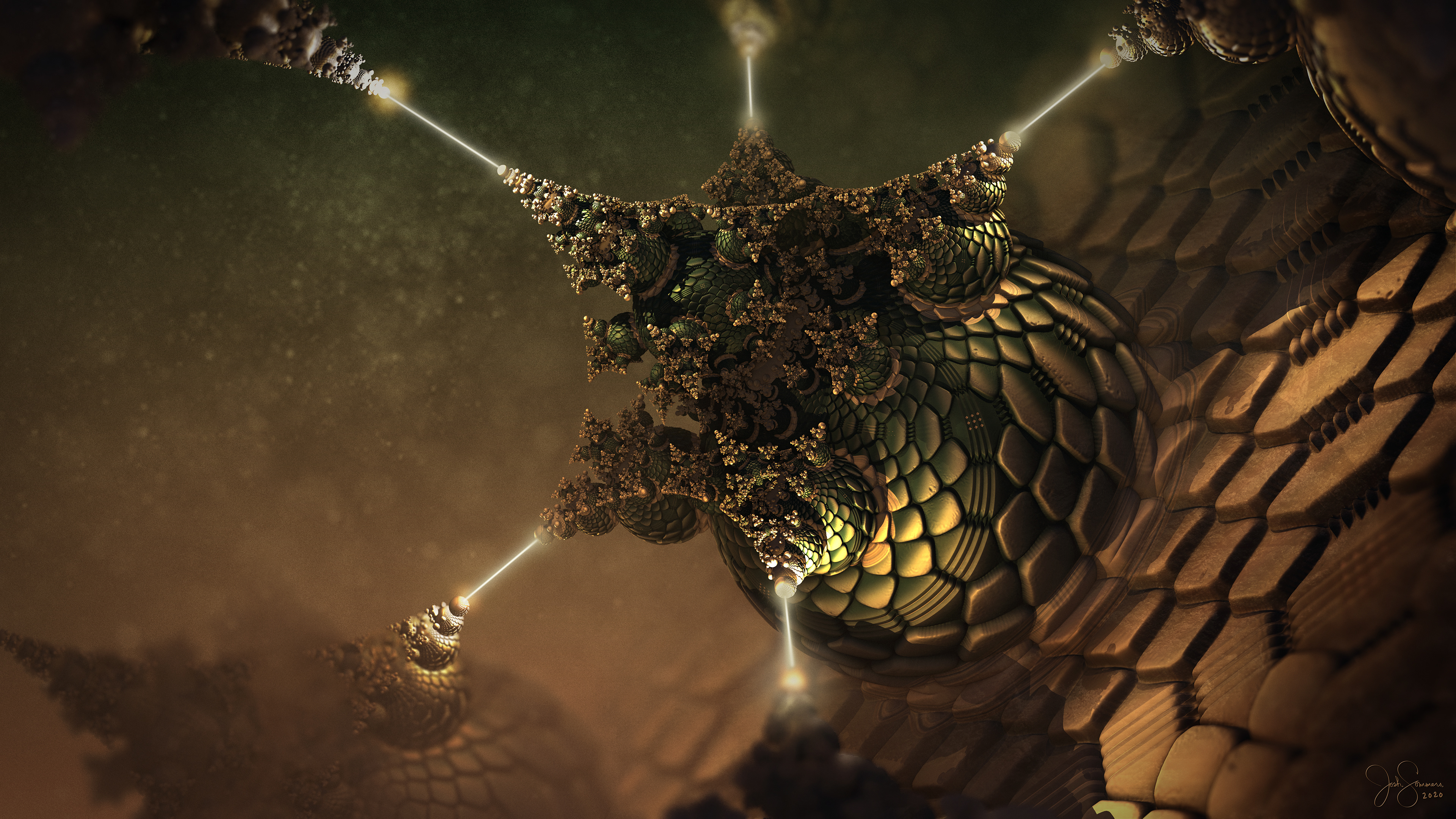 Abstract 3D Fractal art created with Mandelbul3D and Photoshop.
