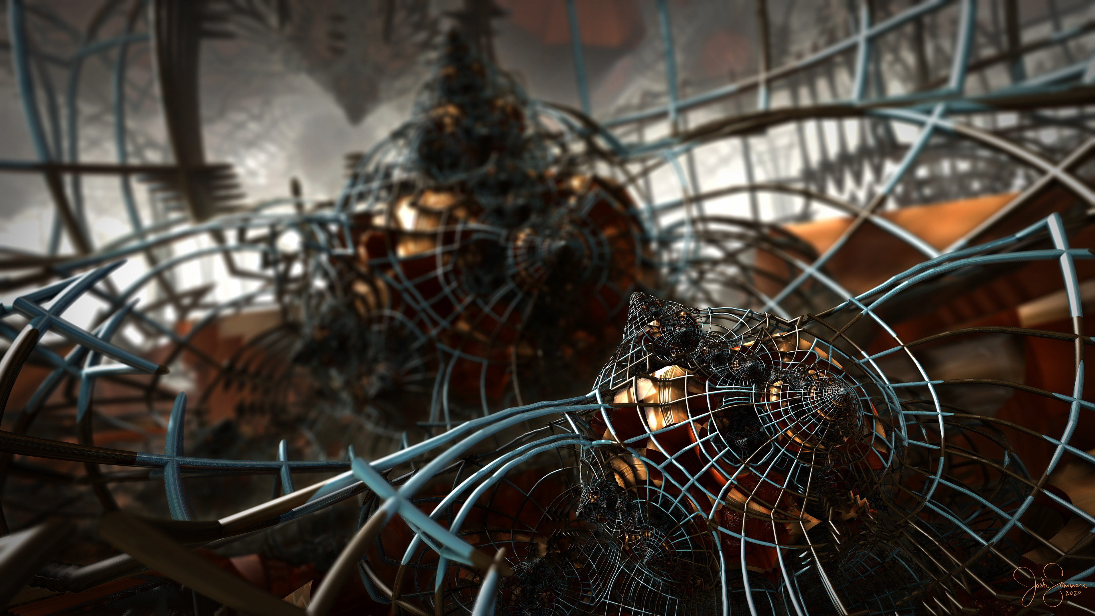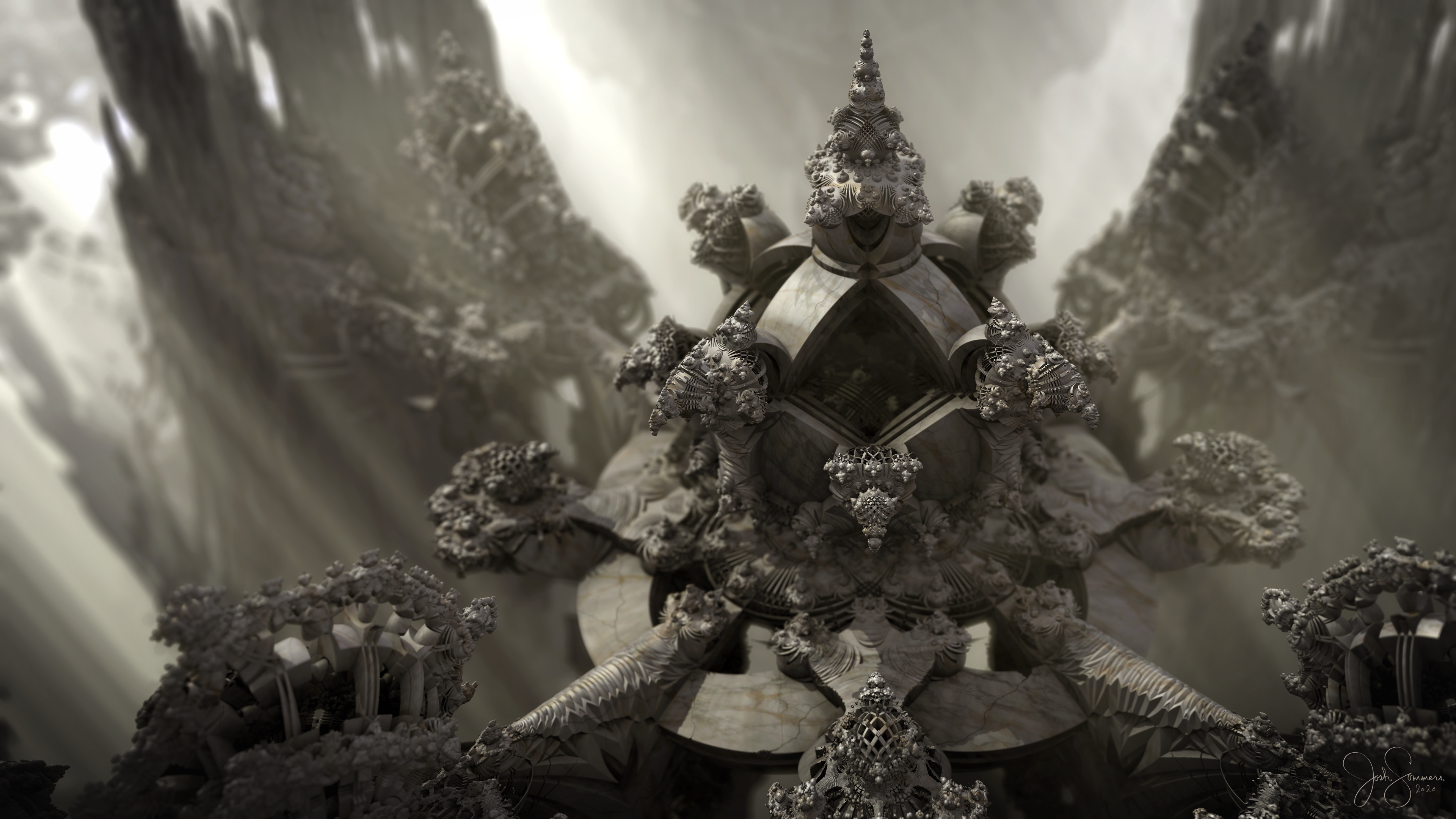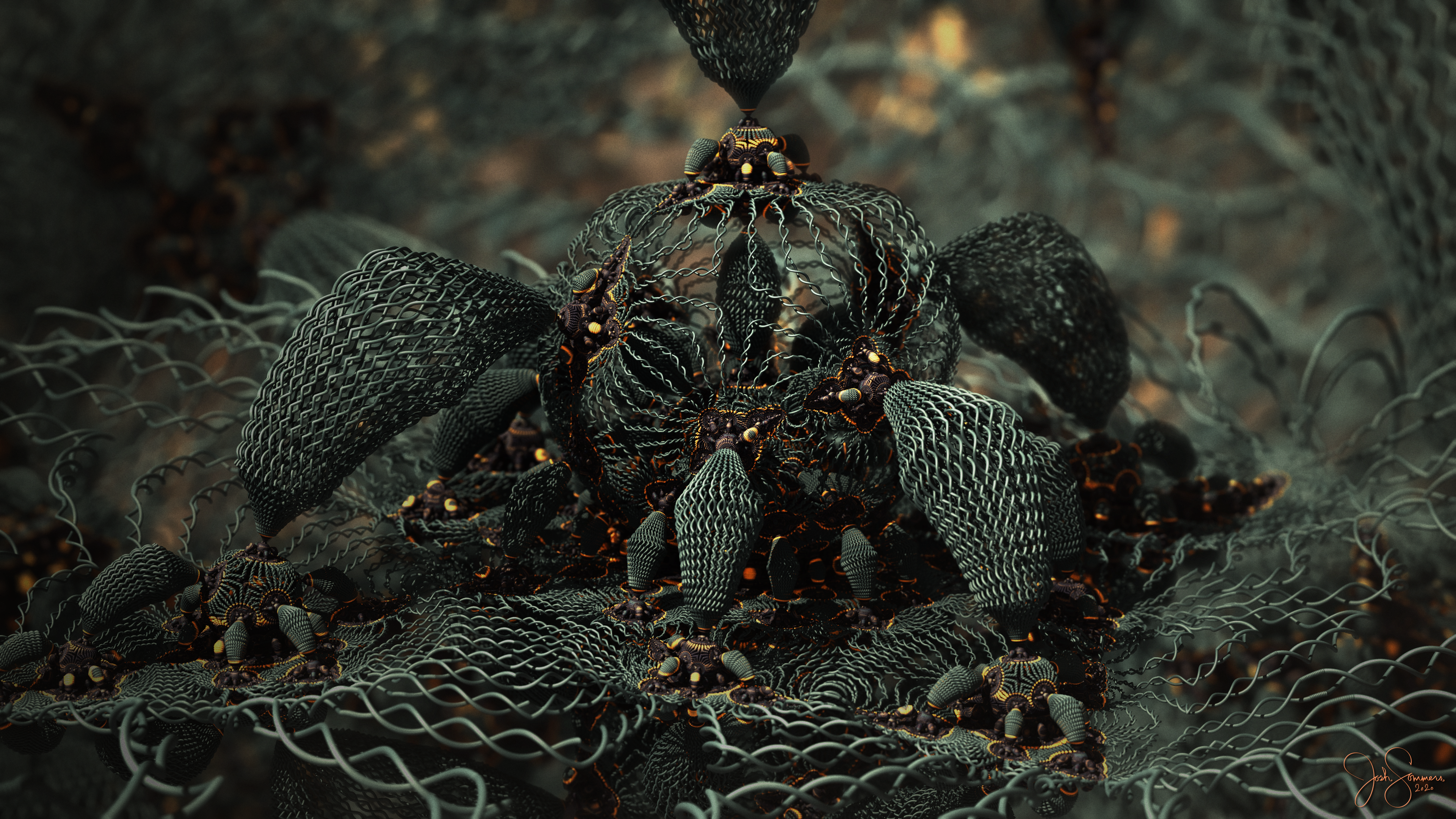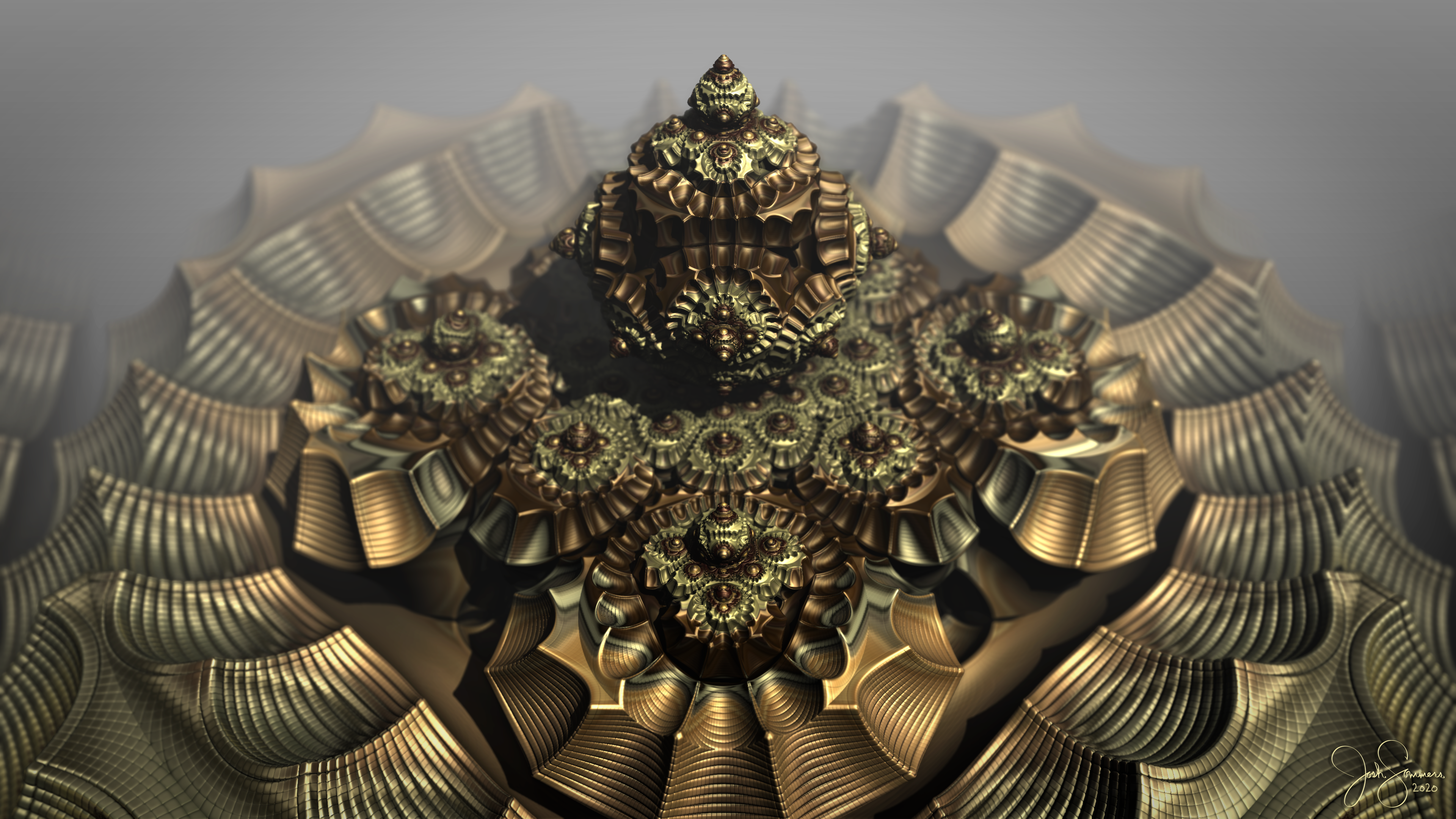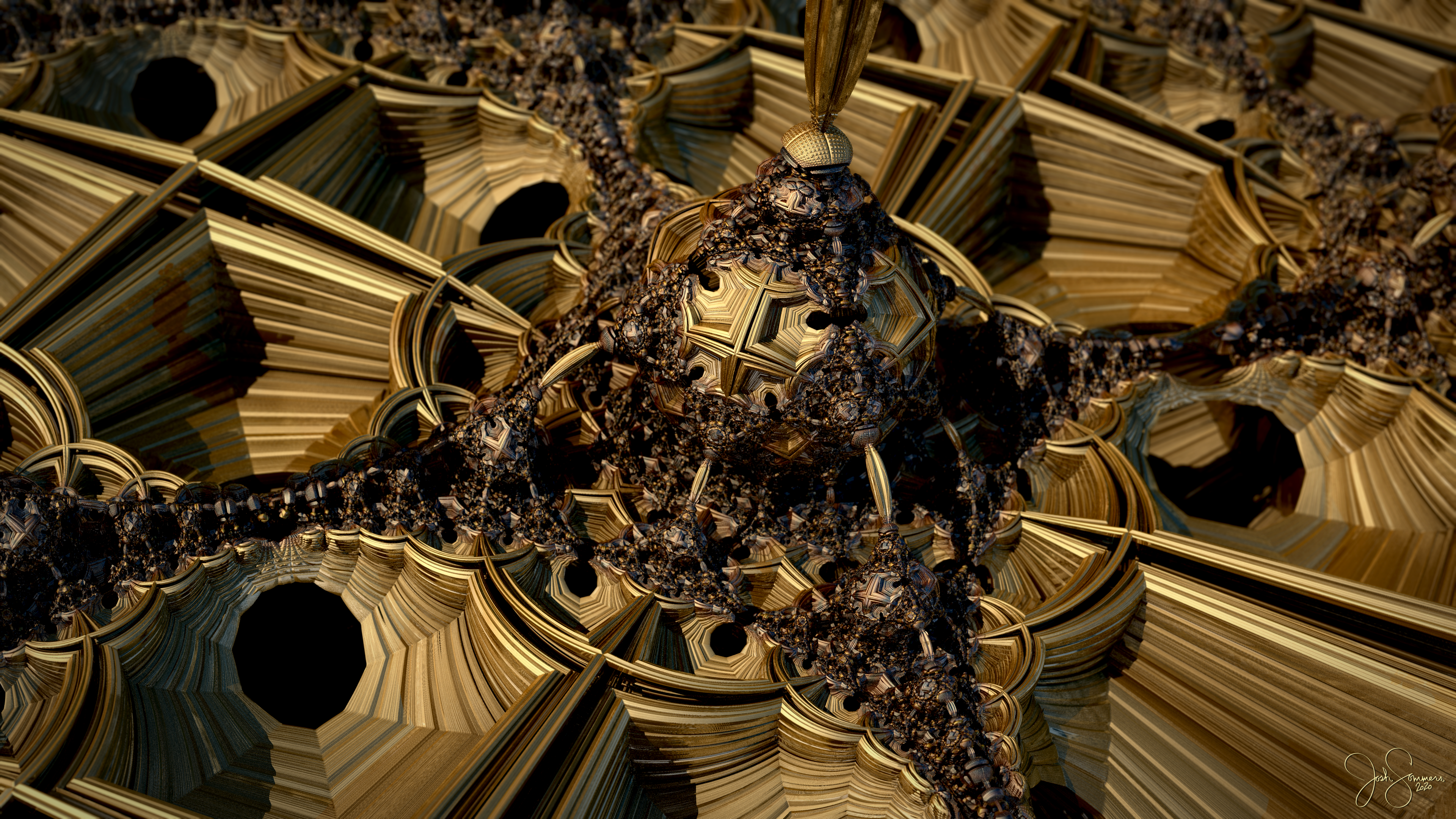 Abstract 3D Fractal art created with Mandelbul3D and Photoshop.