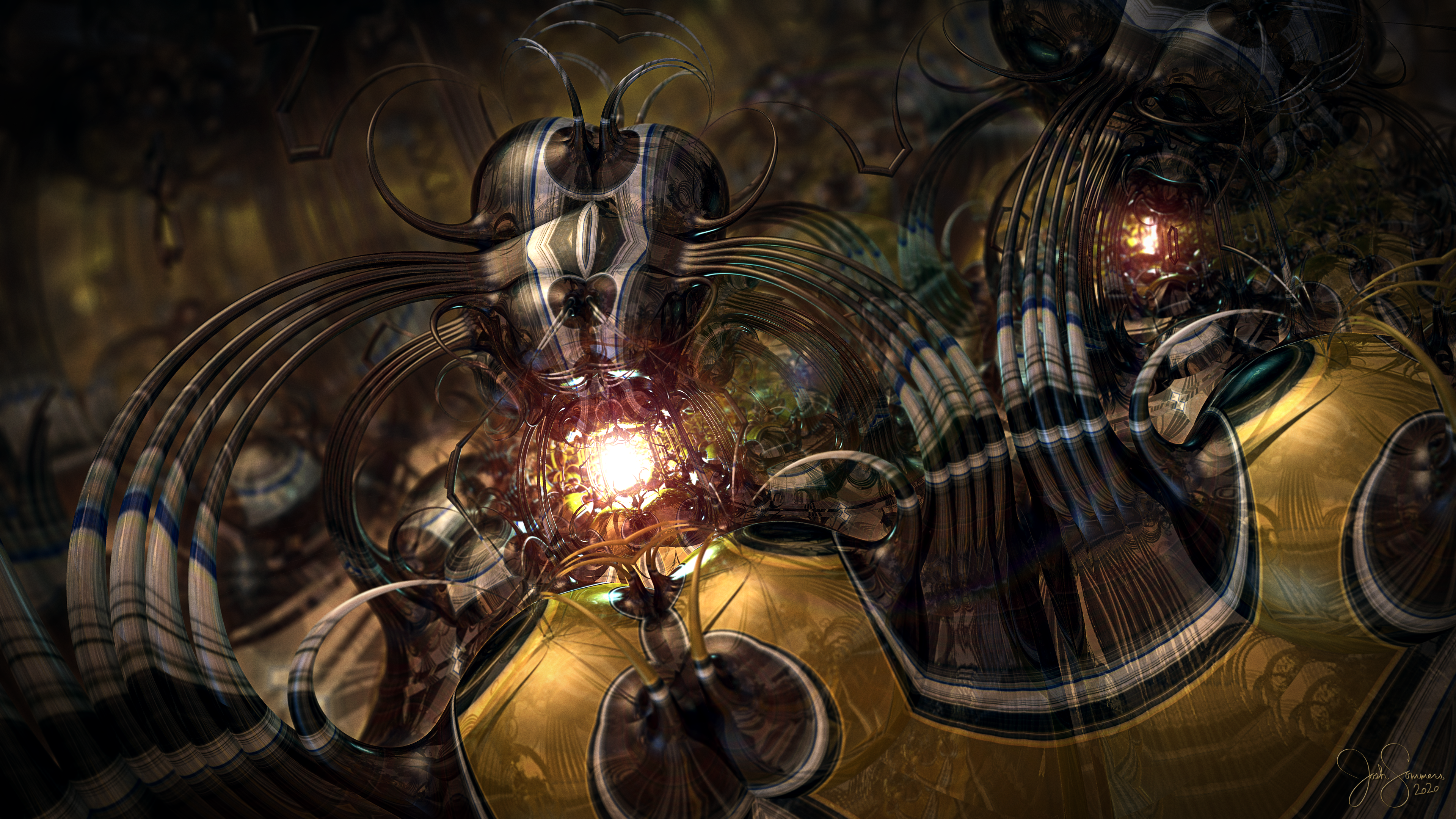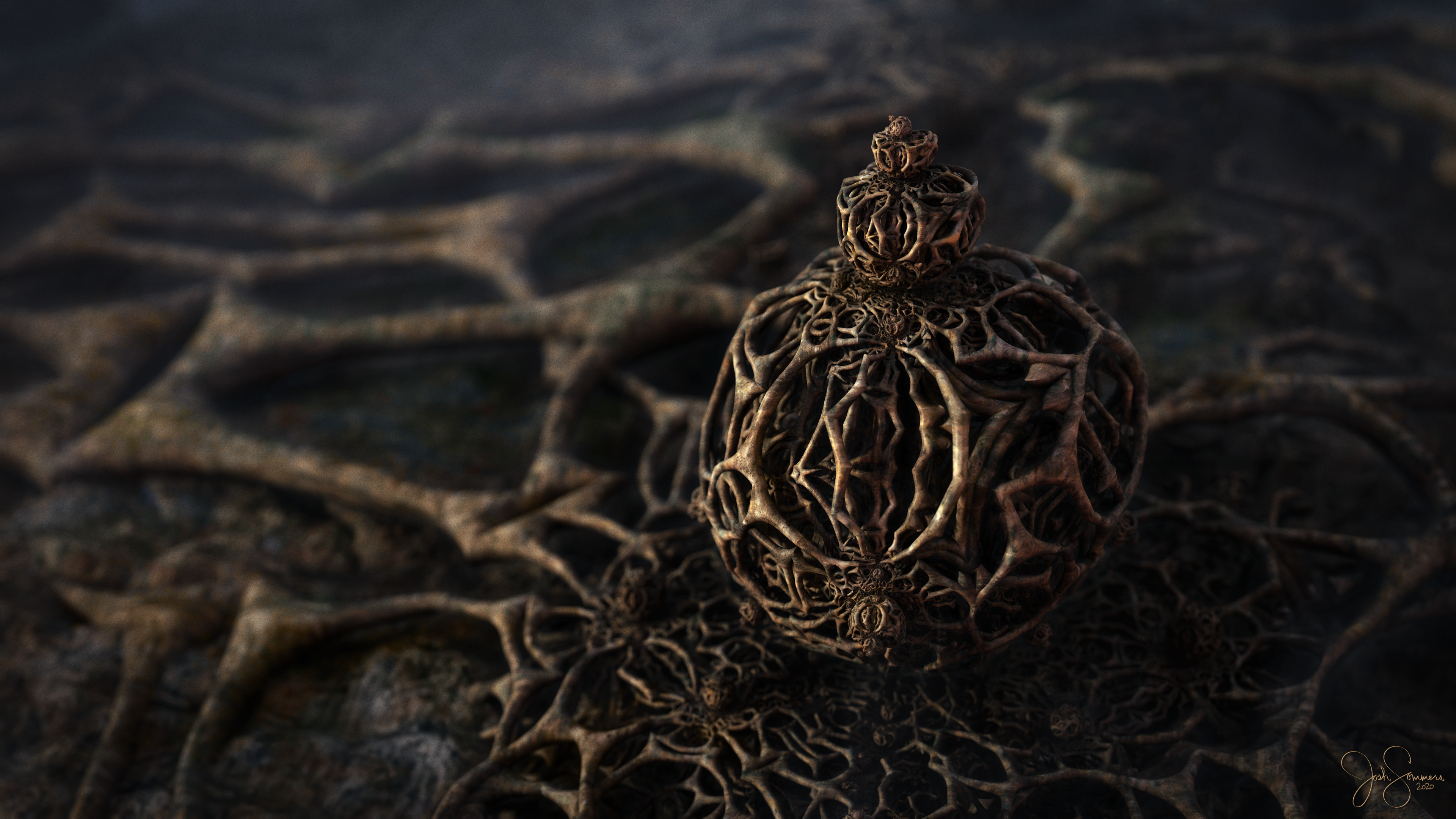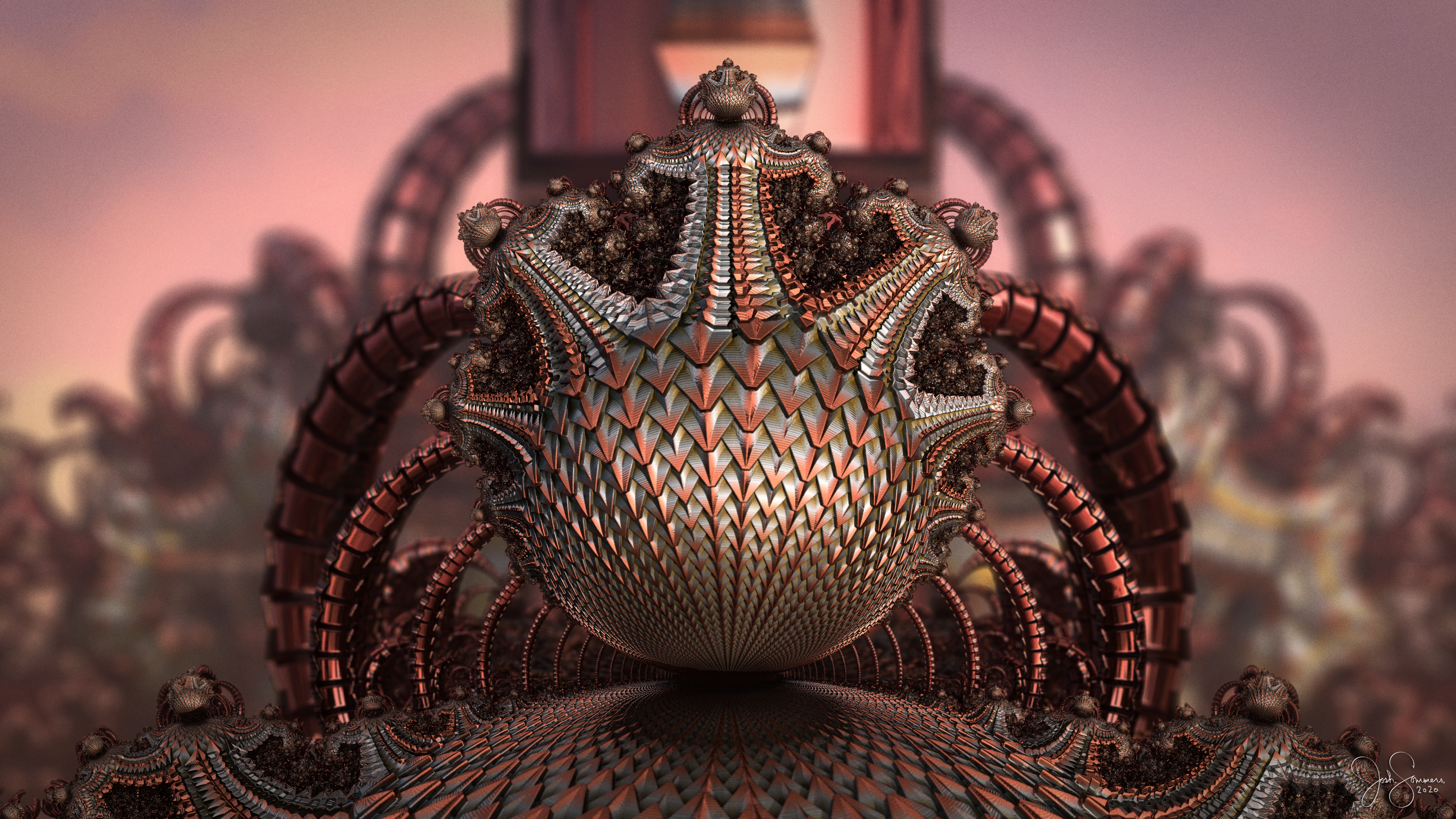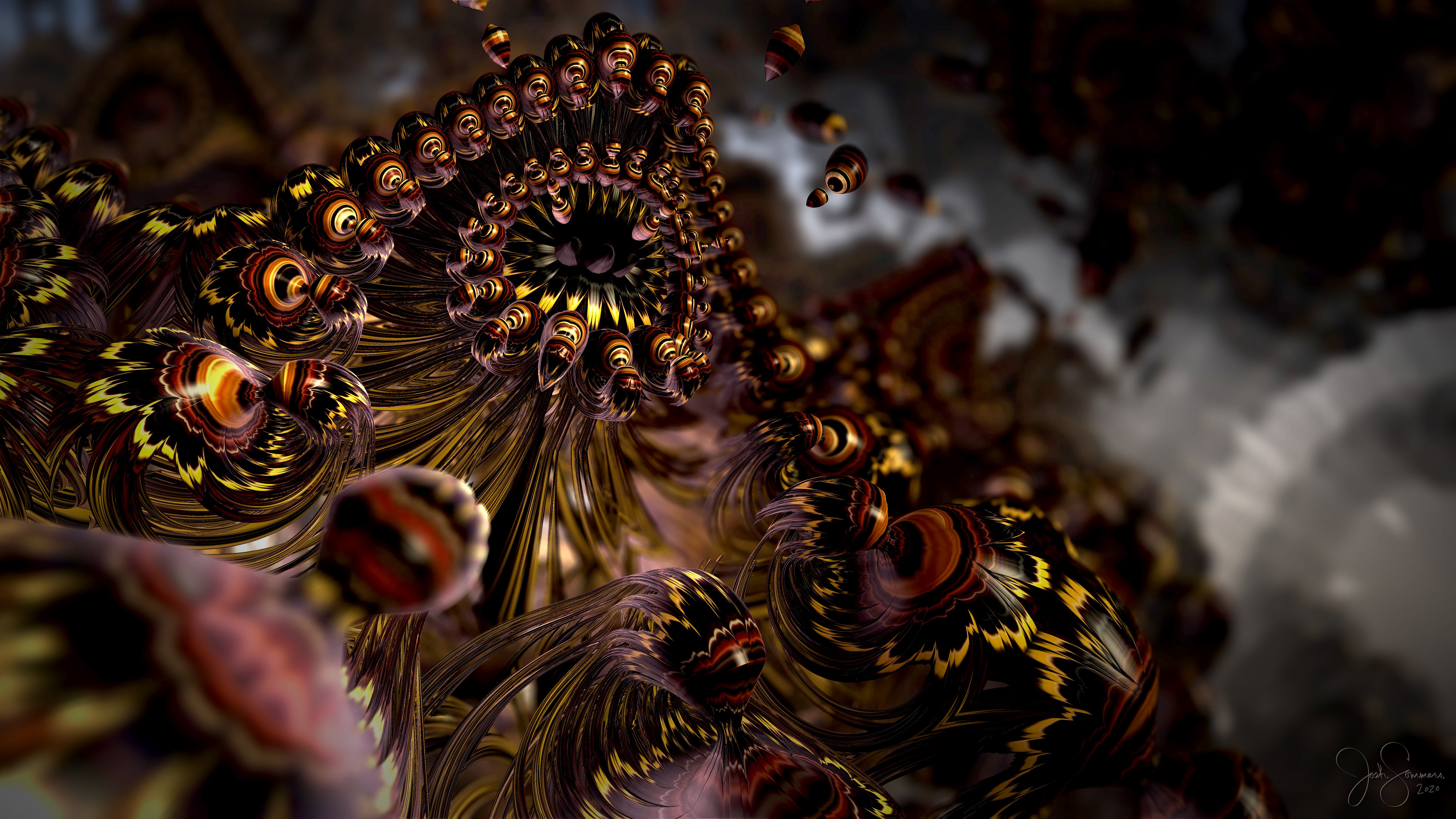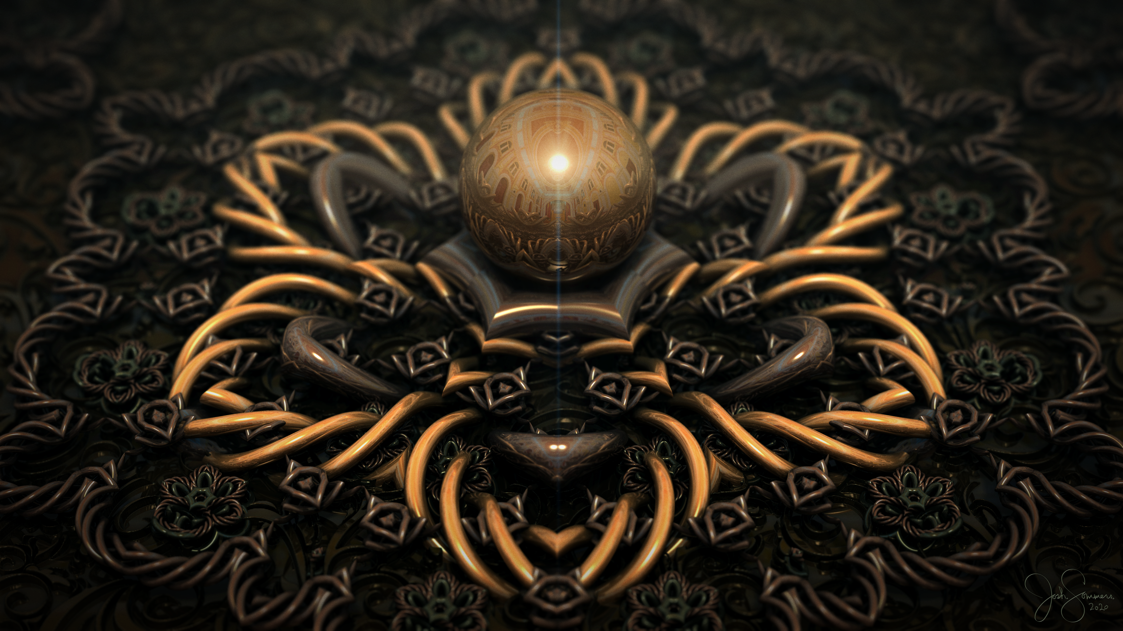 Abstract 3D Fractal art created with Mandelbul3D and Photoshop.