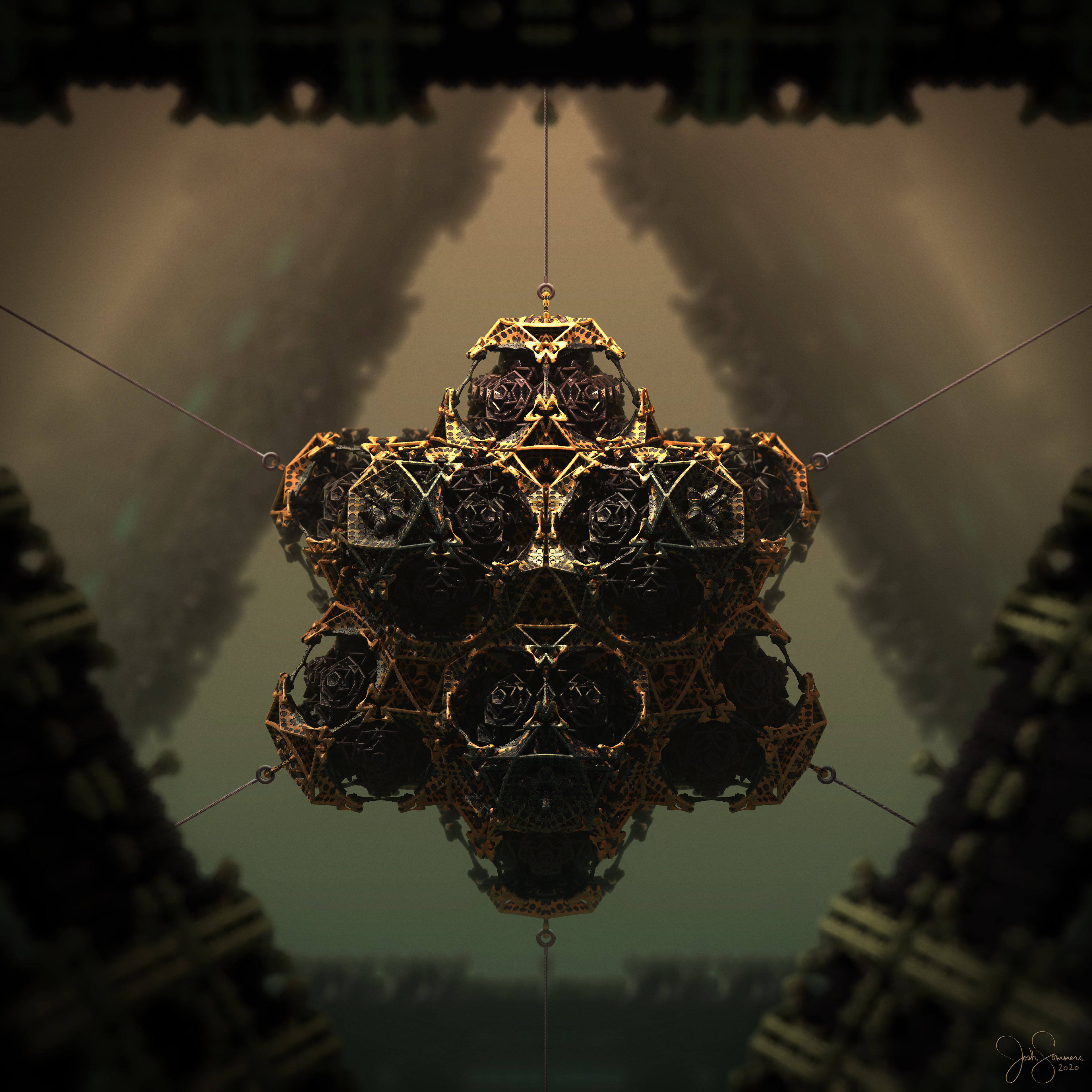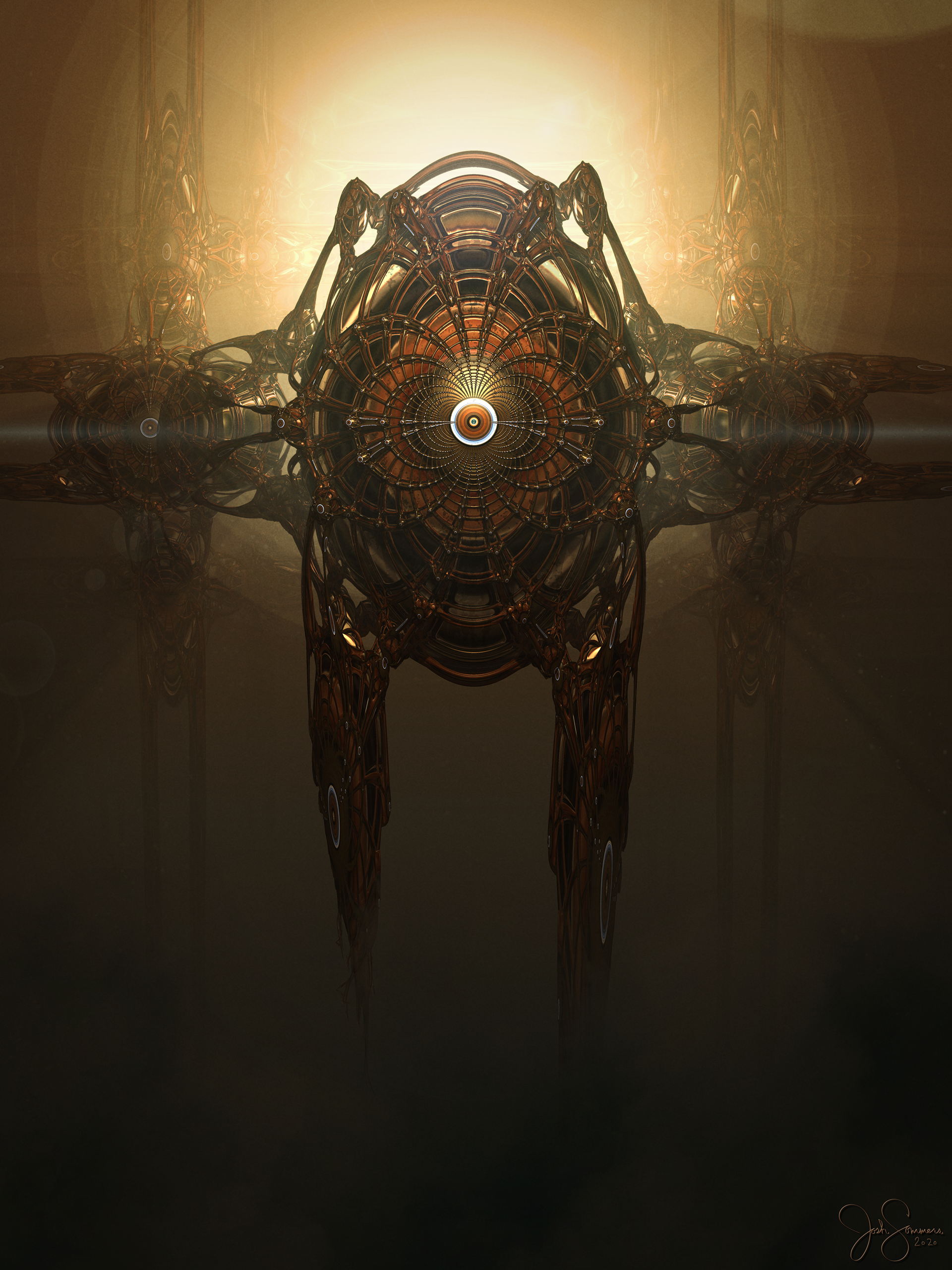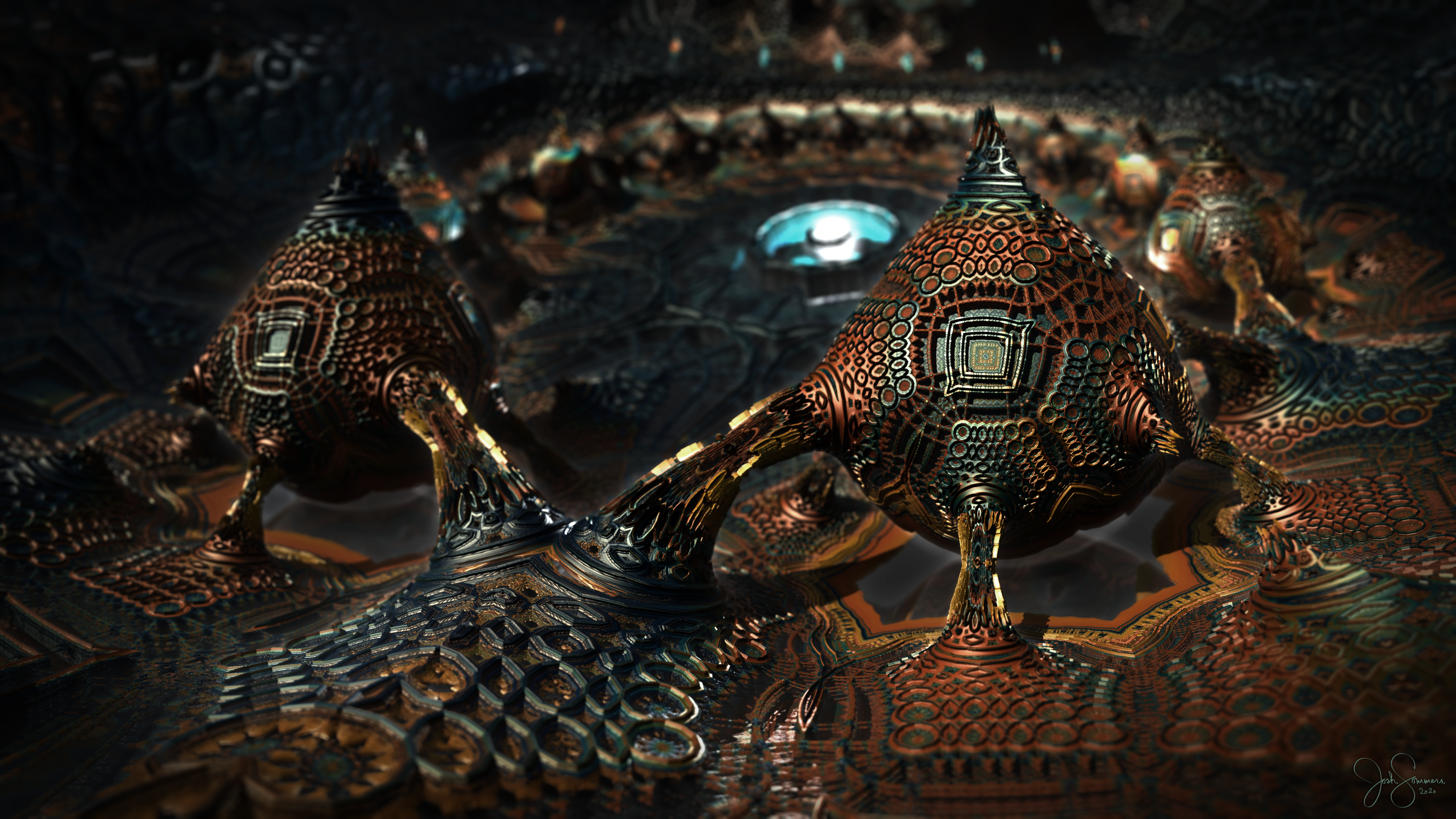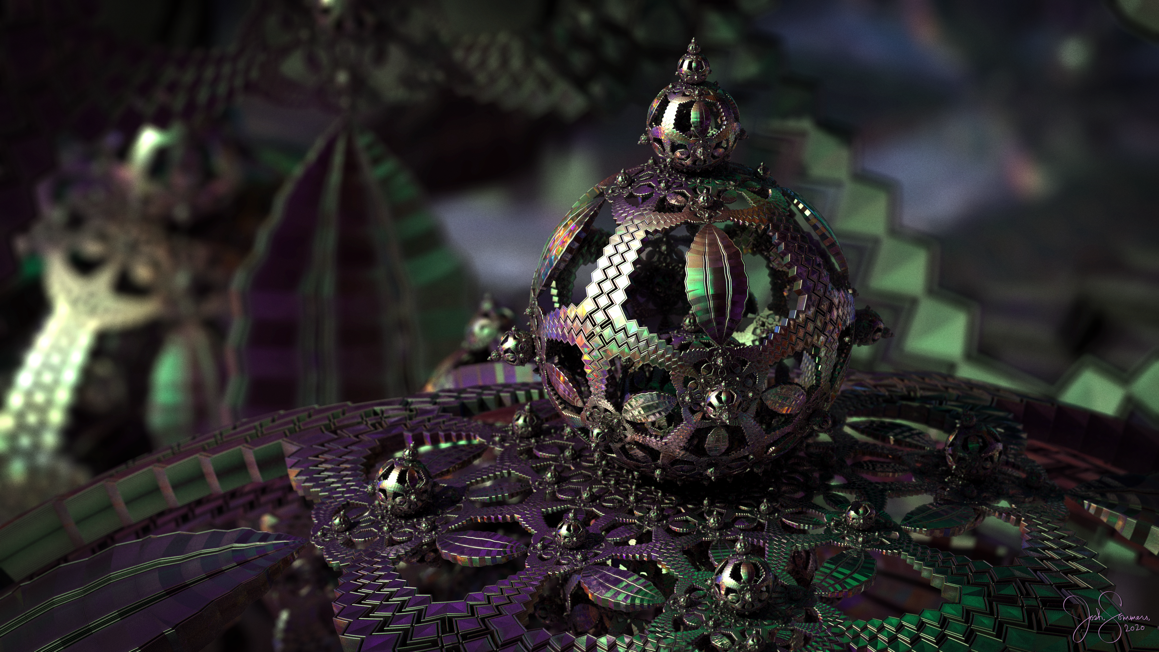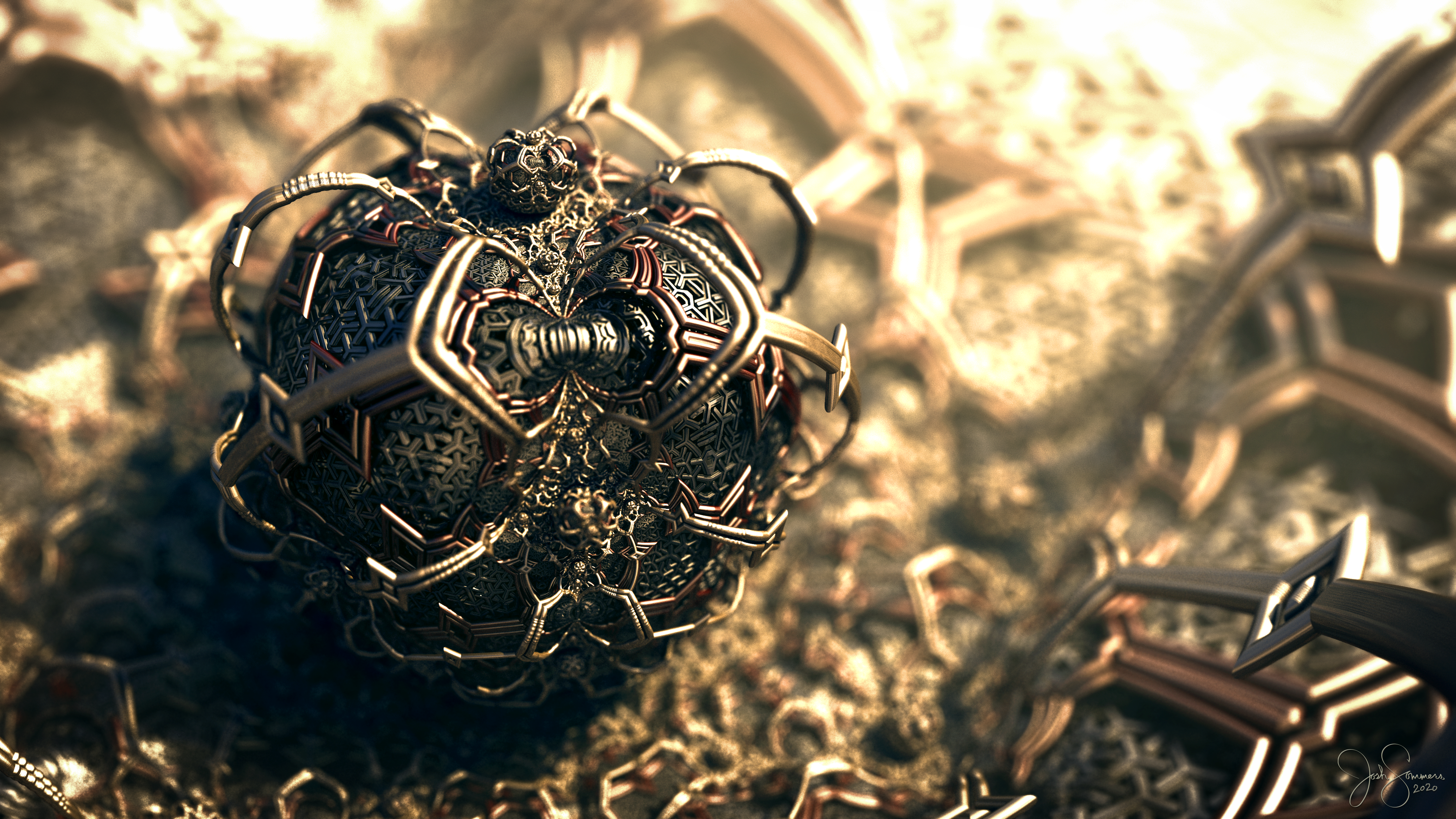 Abstract 3D Fractal art created with Mandelbul3D and Photoshop.