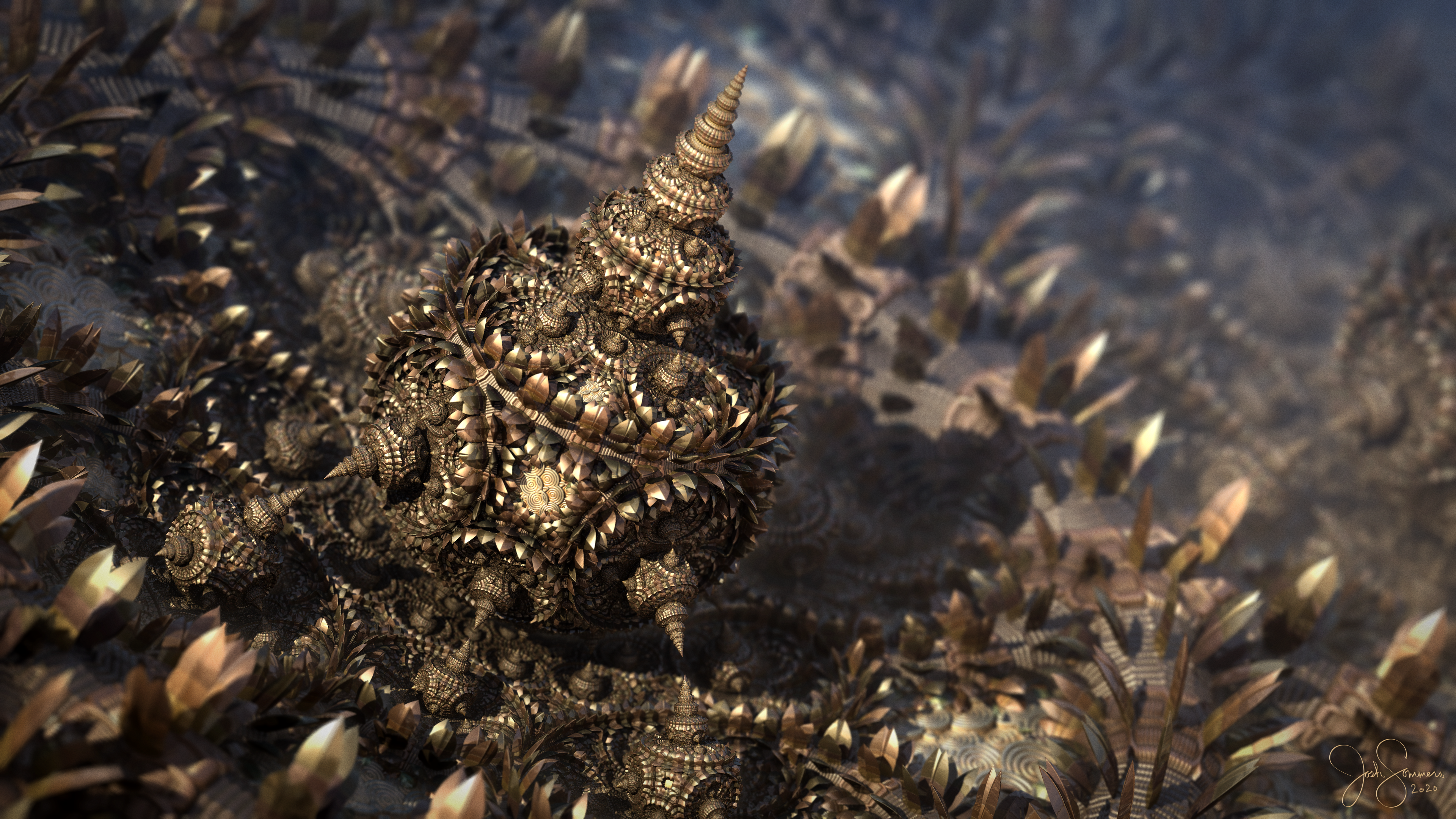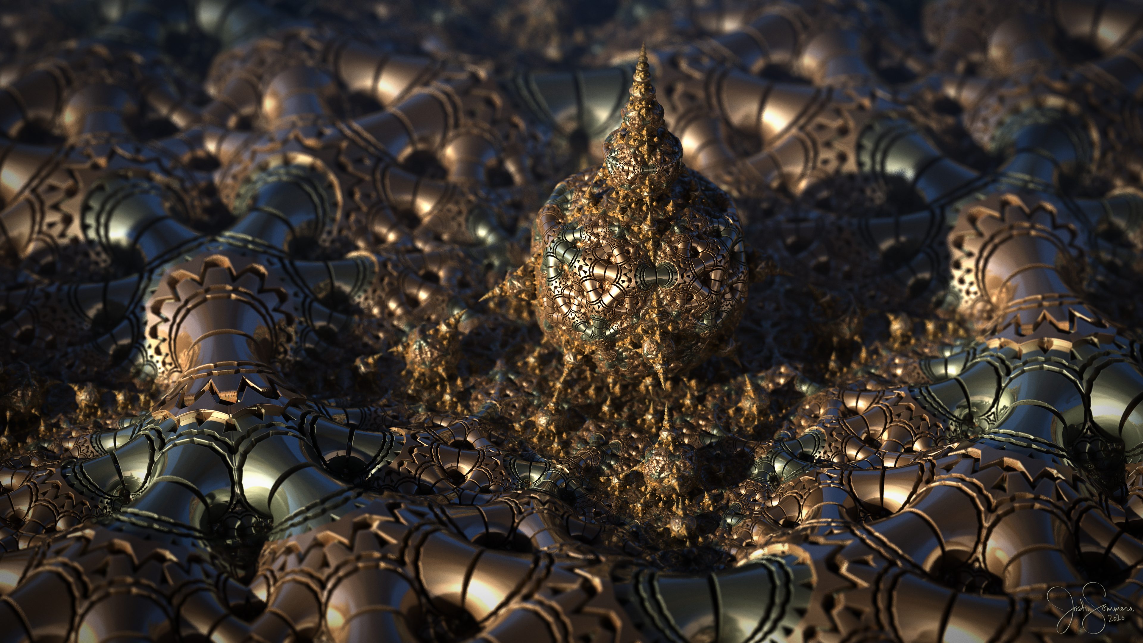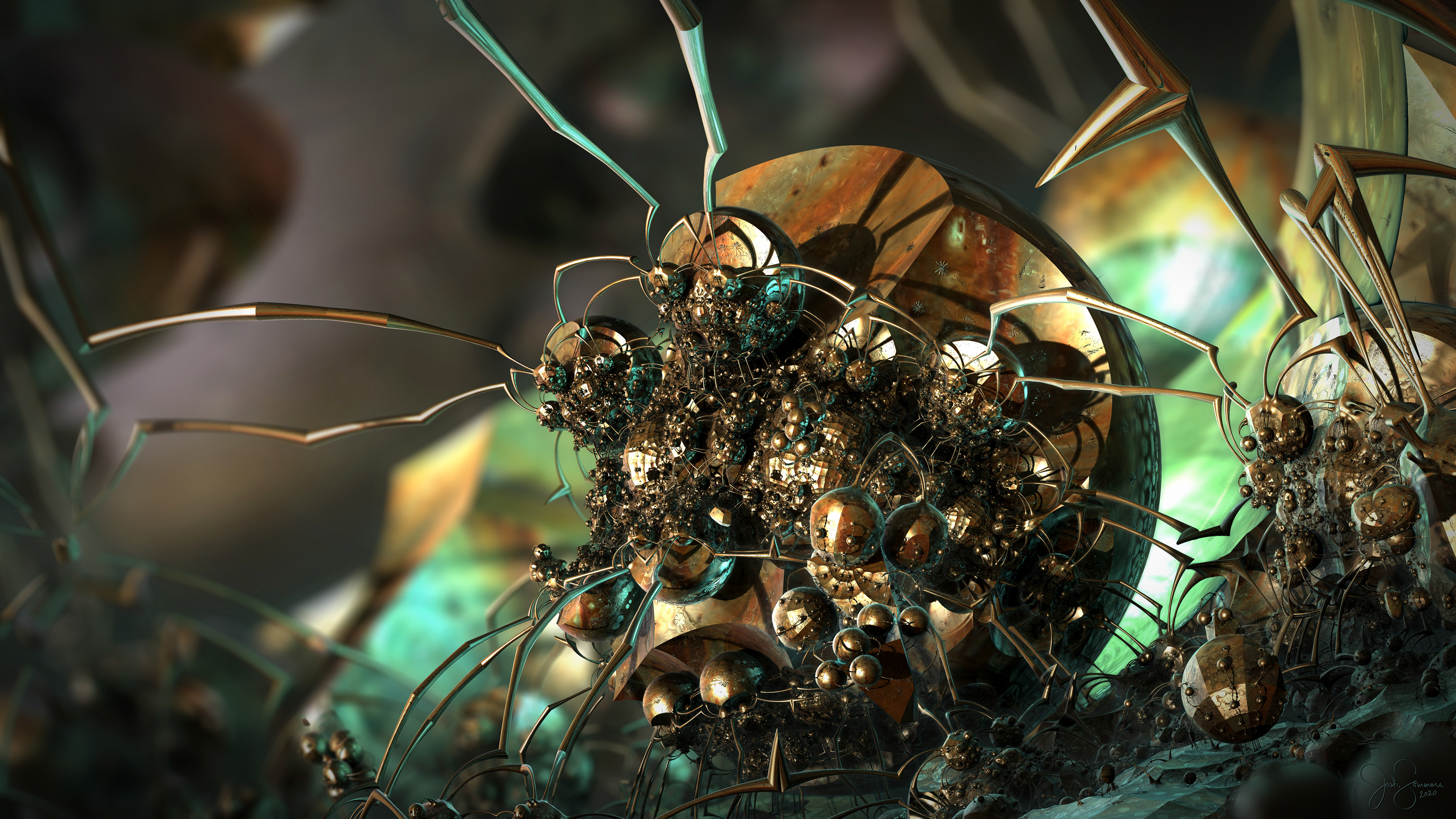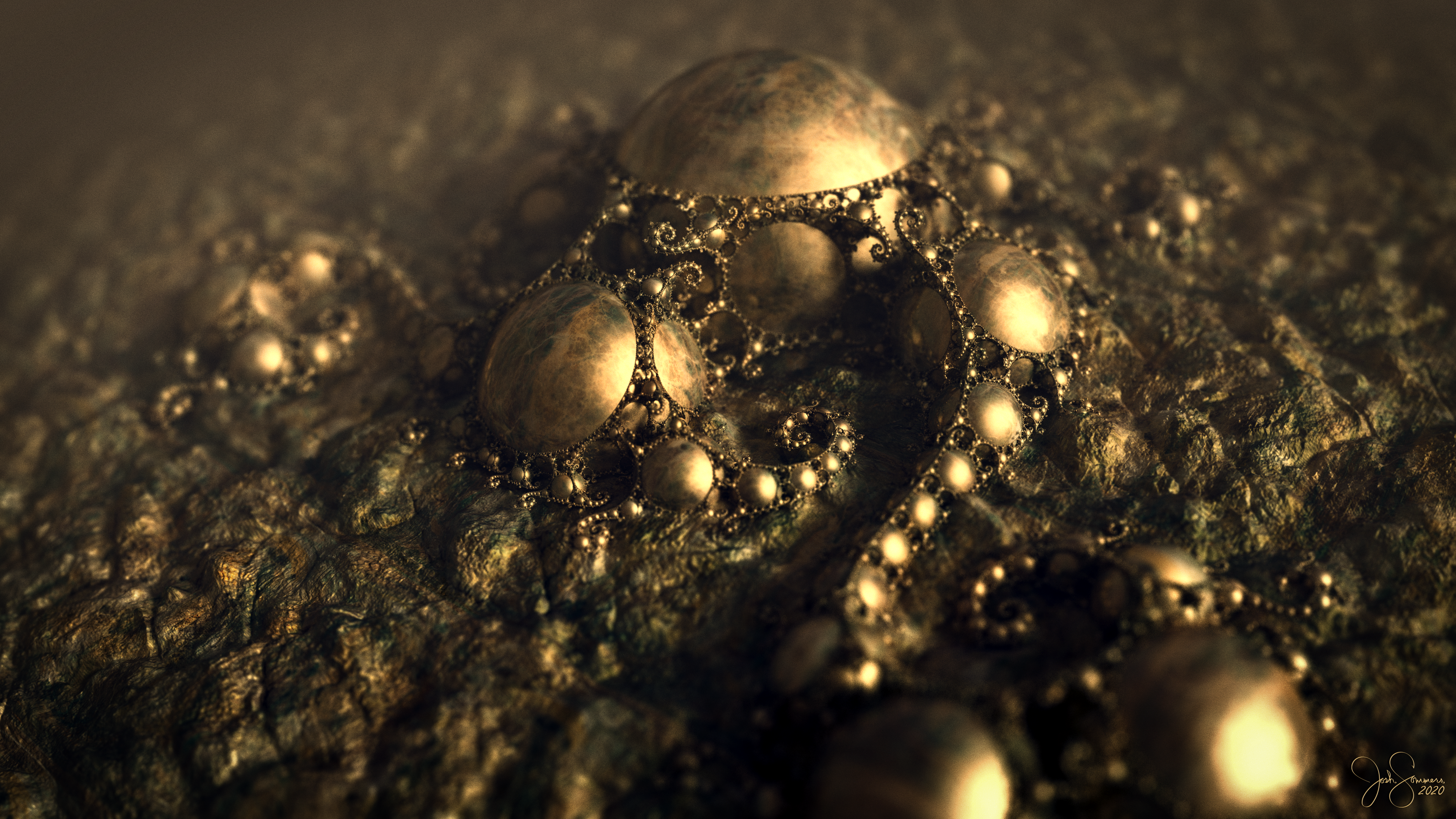 Abstract 3D Fractal art created with Mandelbul3D and Photoshop.
