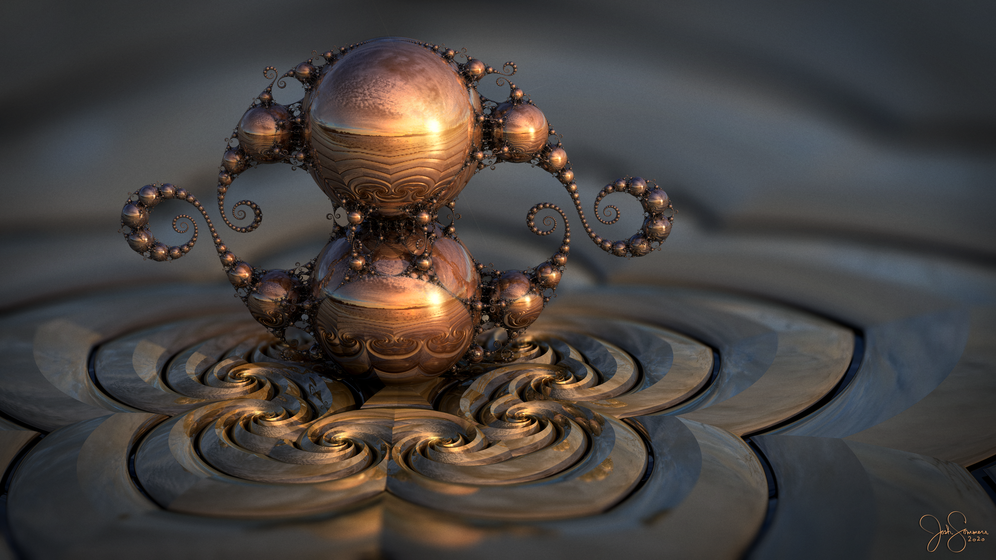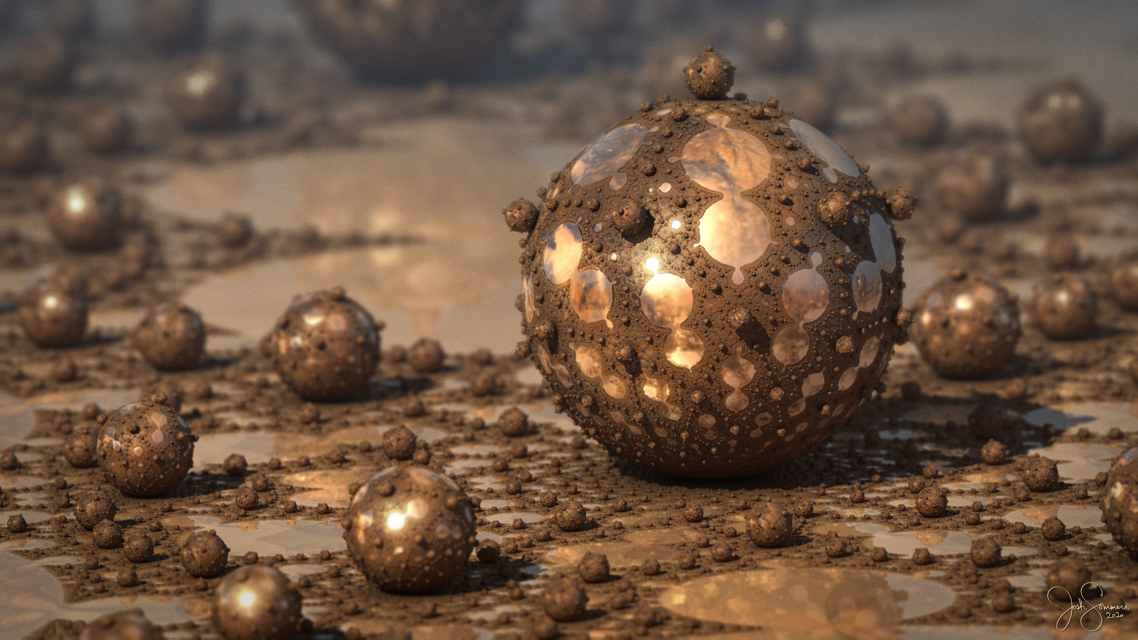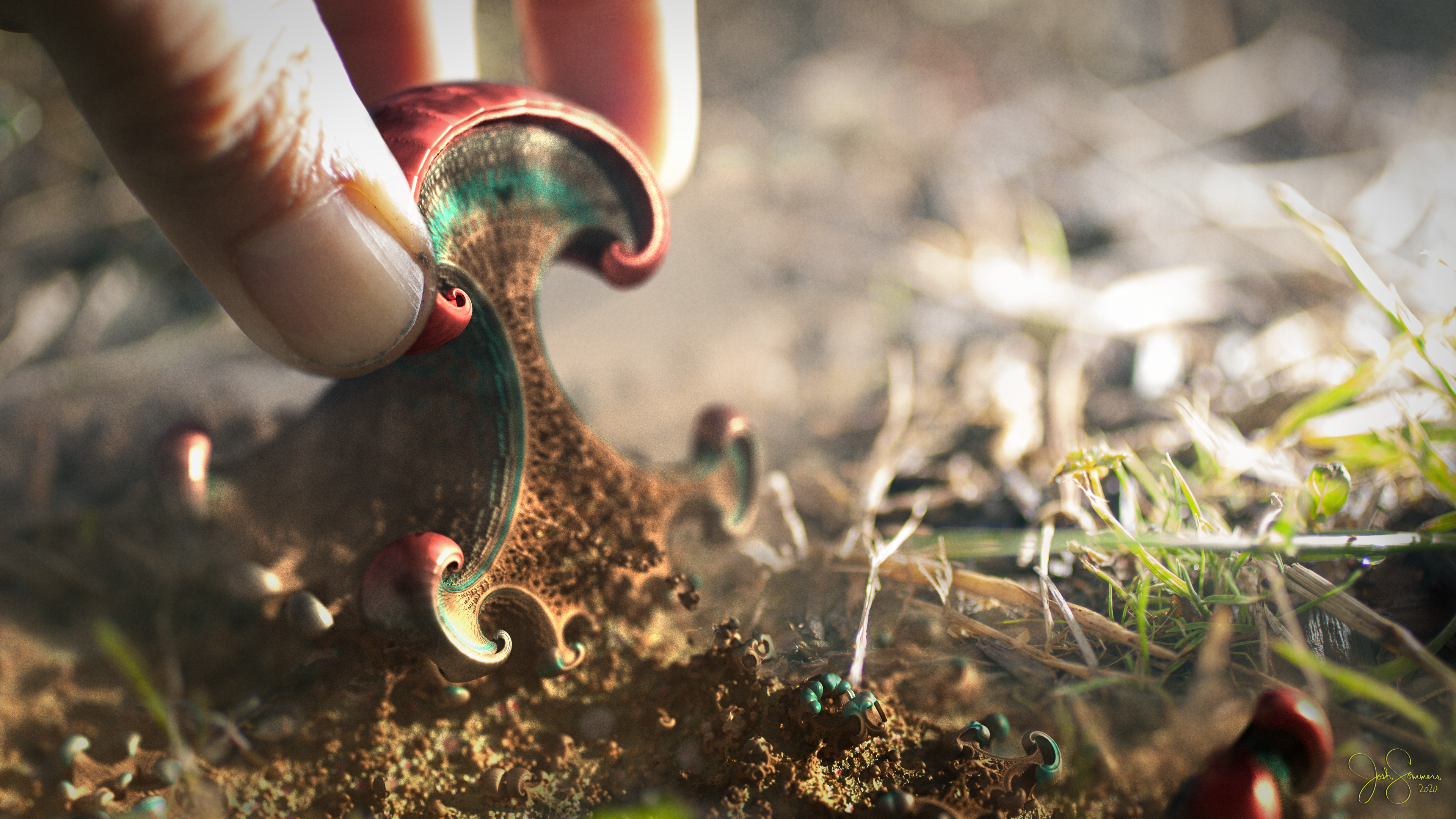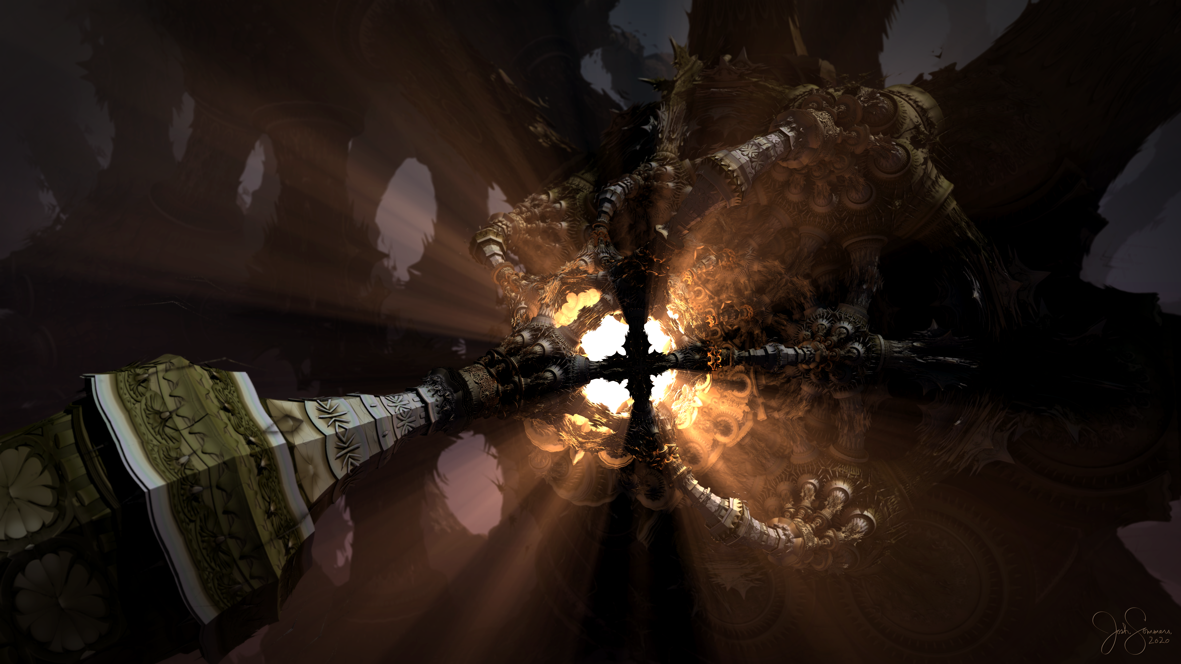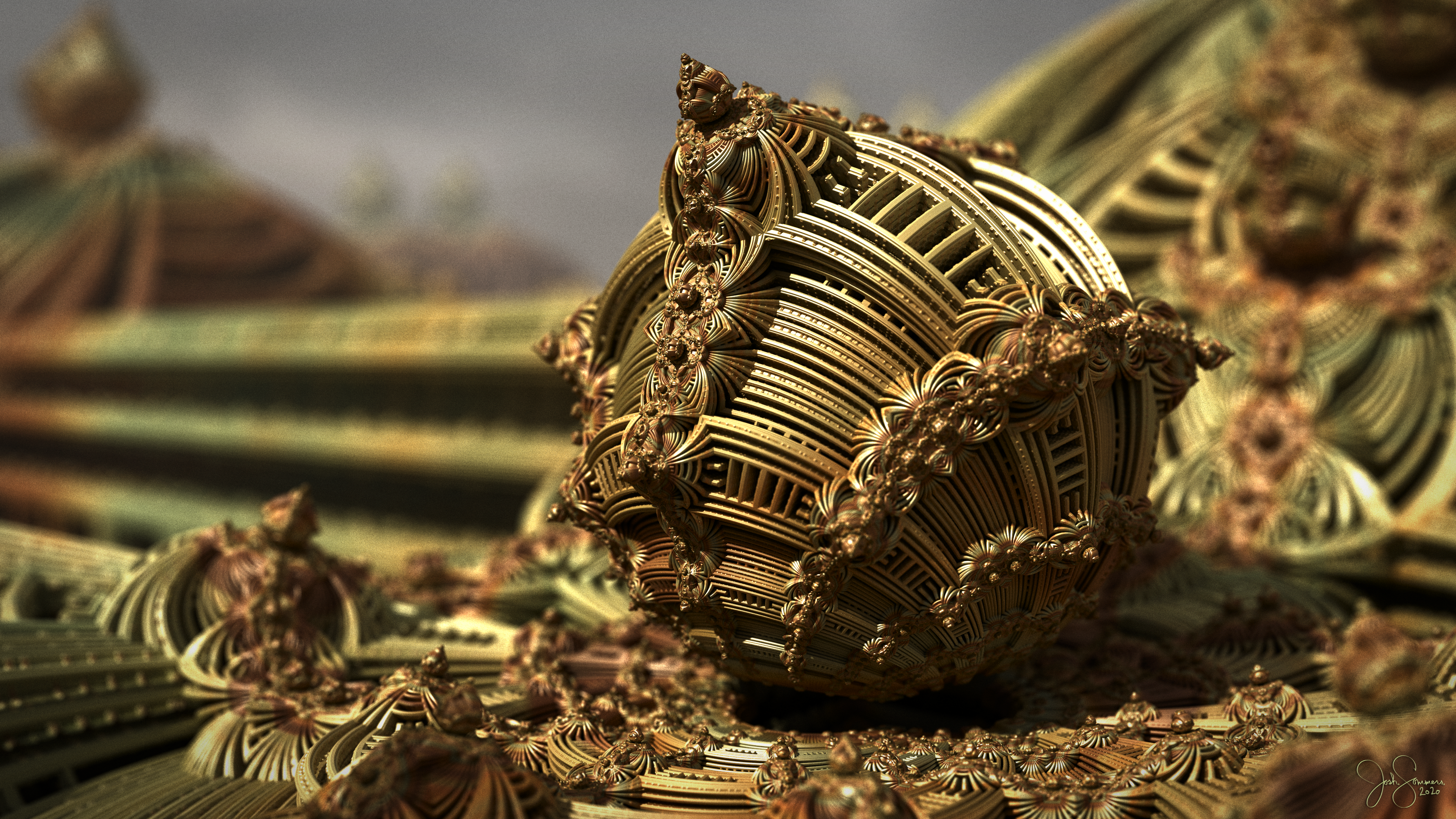 Abstract 3D Fractal art created with Mandelbul3D and Photoshop.