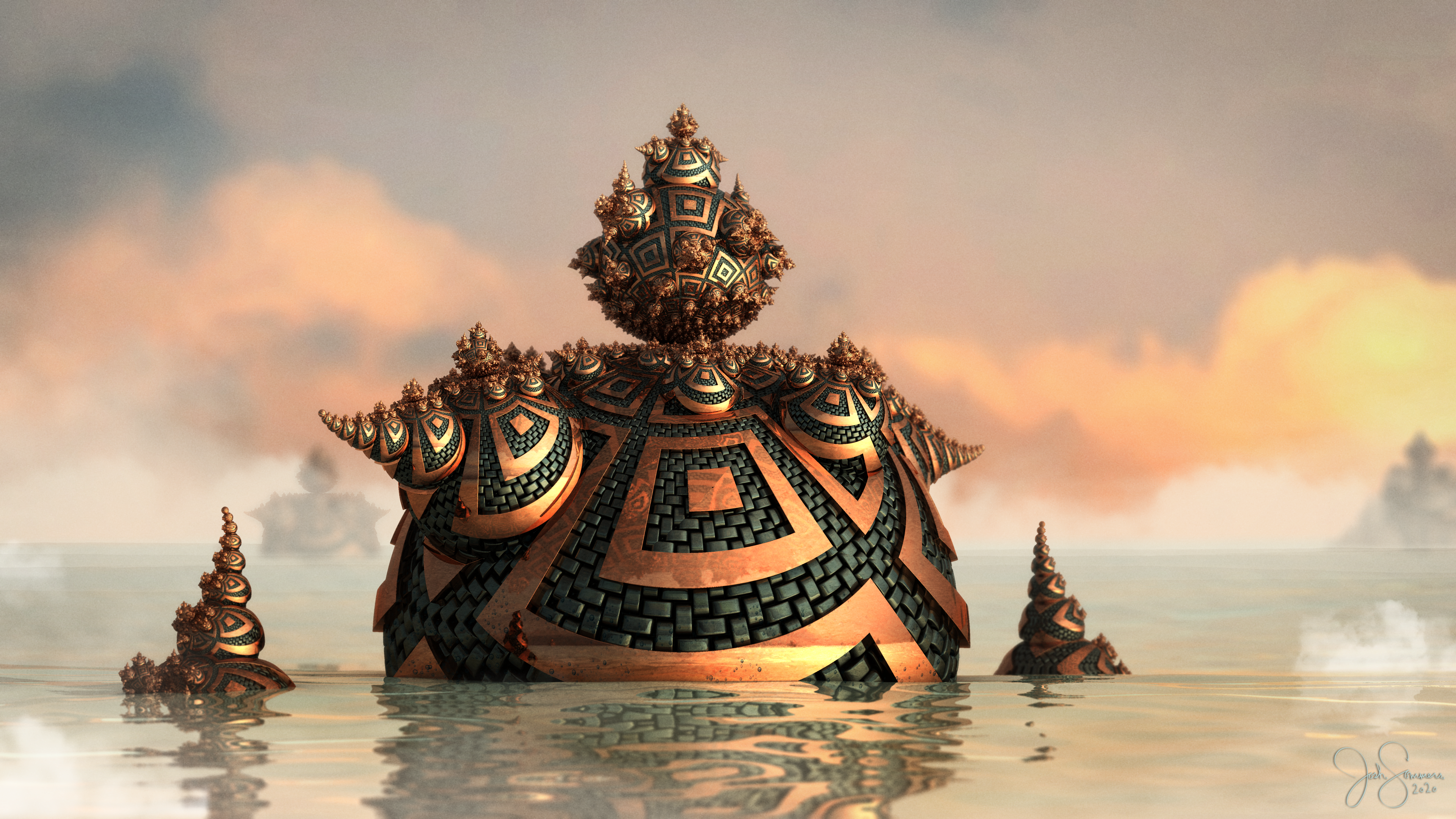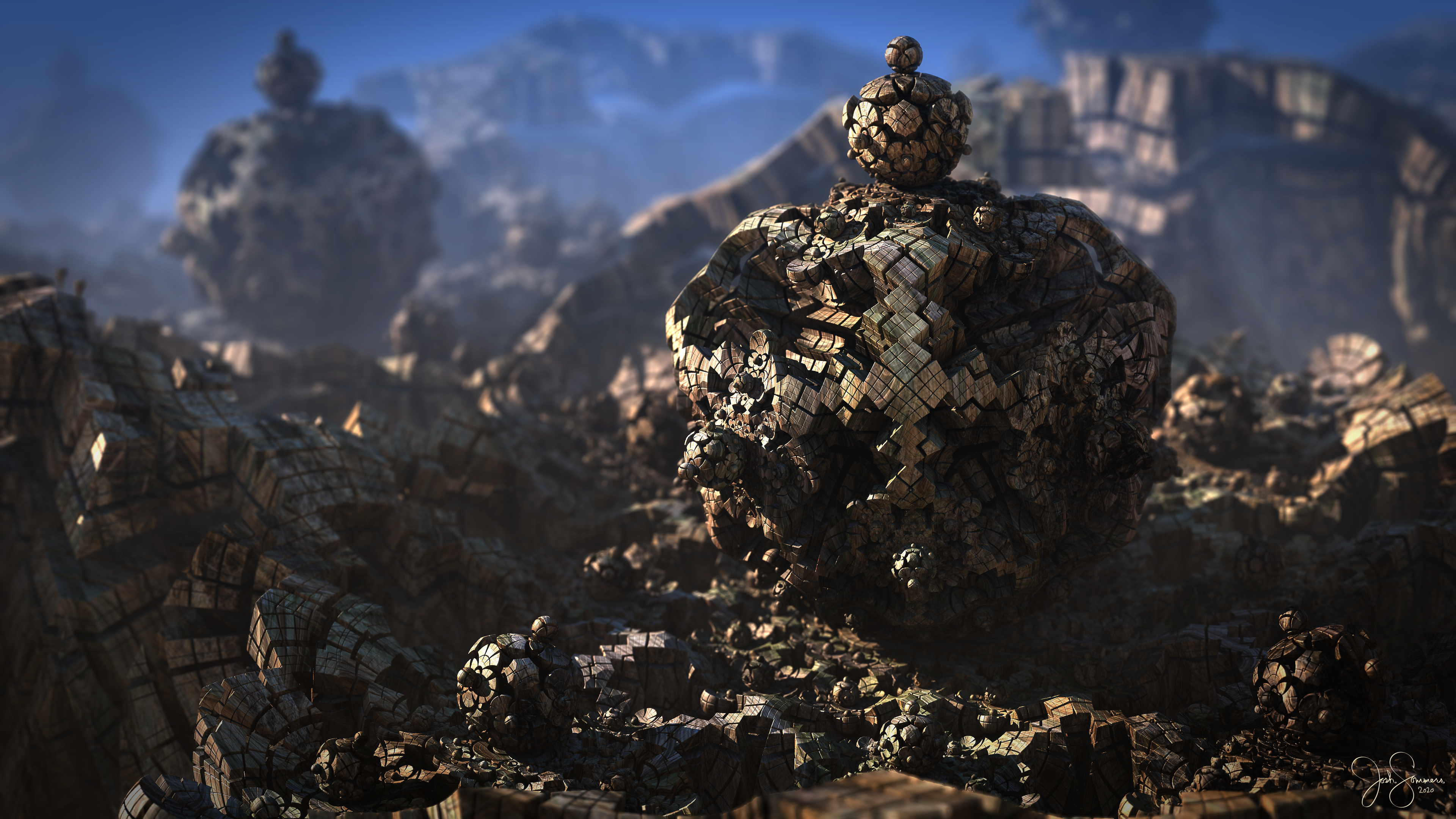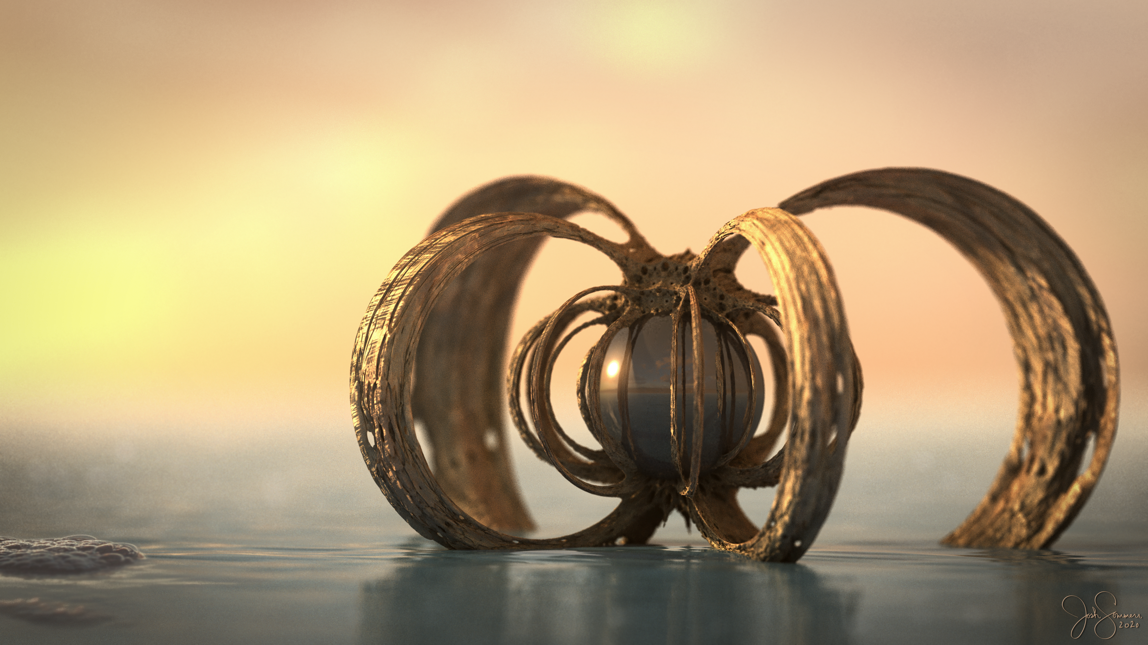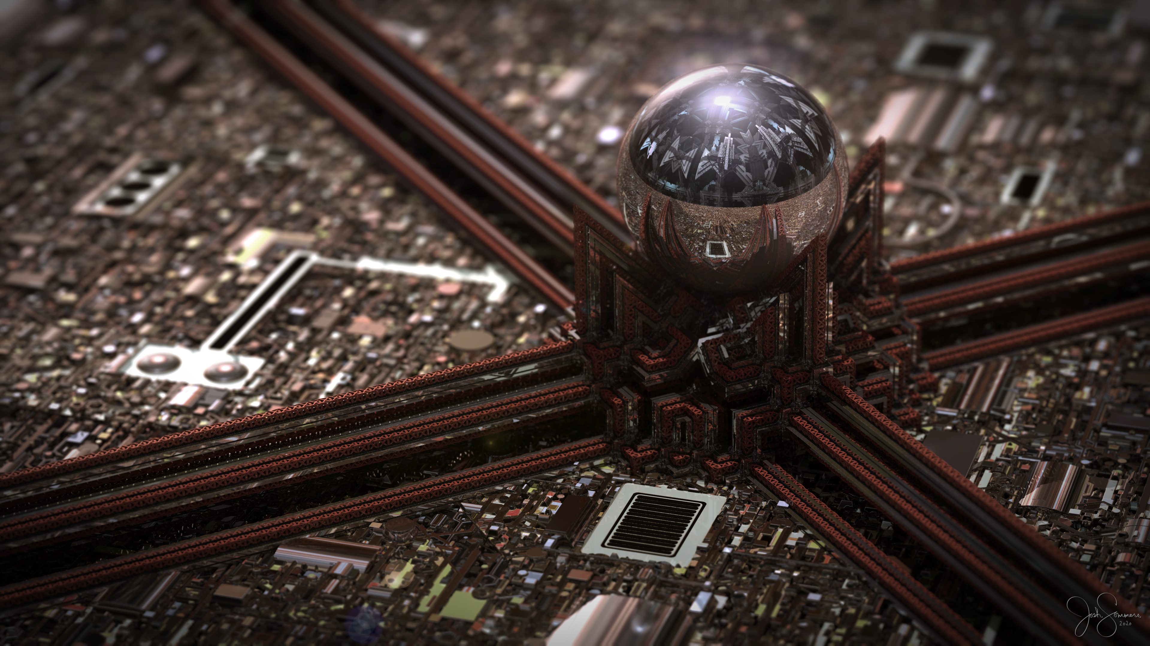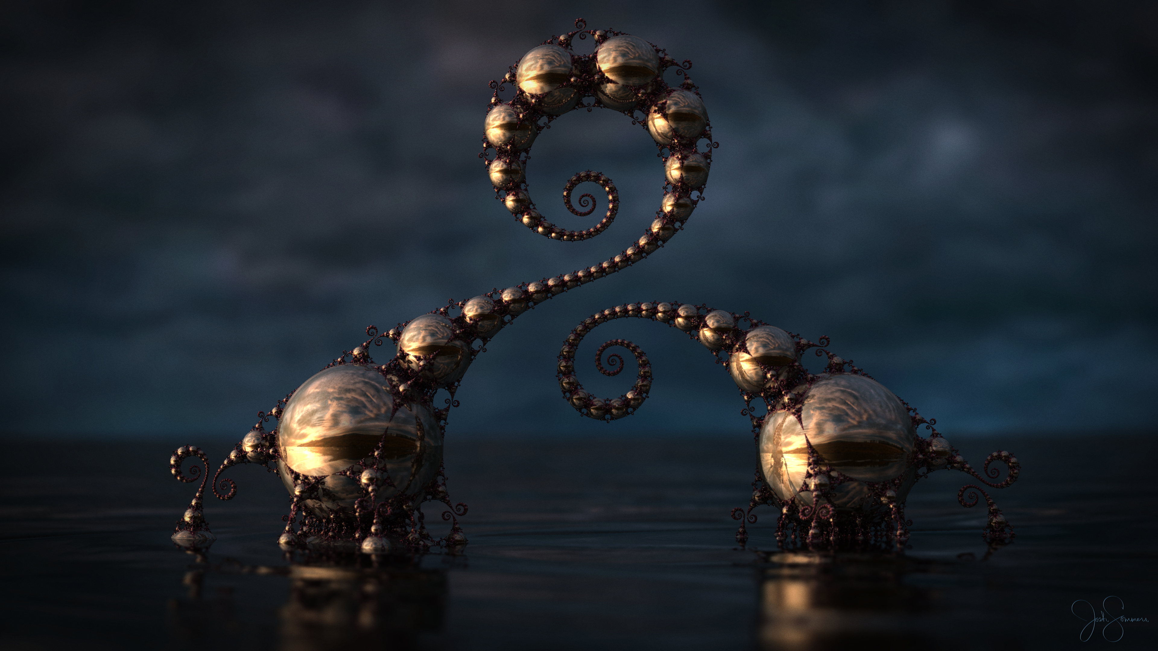 Abstract 3D Fractal art created with Mandelbul3D and Photoshop.