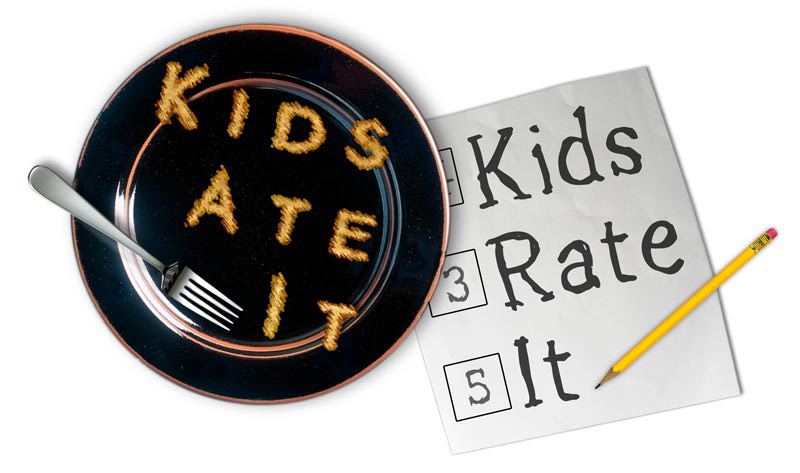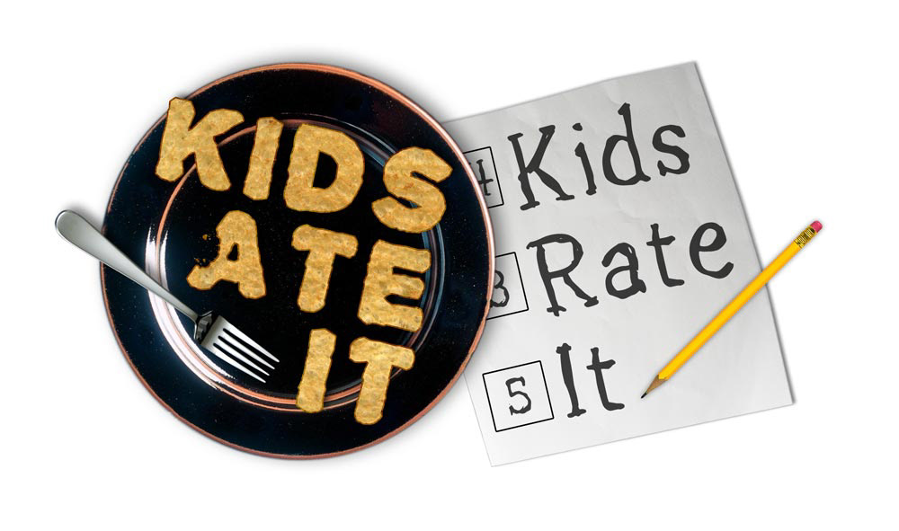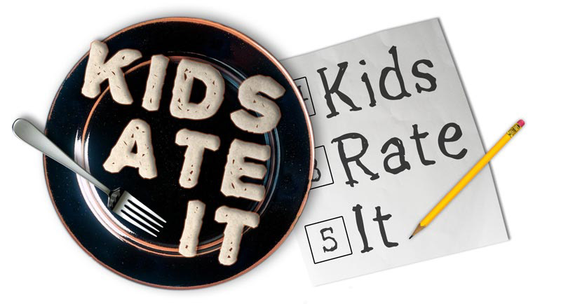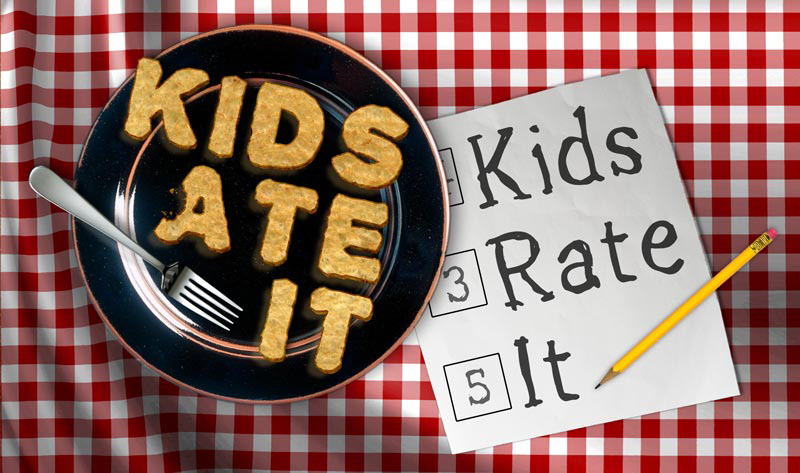 Working directly with the creator of the show, produced multiple variations, treatments and revisions of a logo for a television show concept called "Kids Ate It/Kids Rate It".
